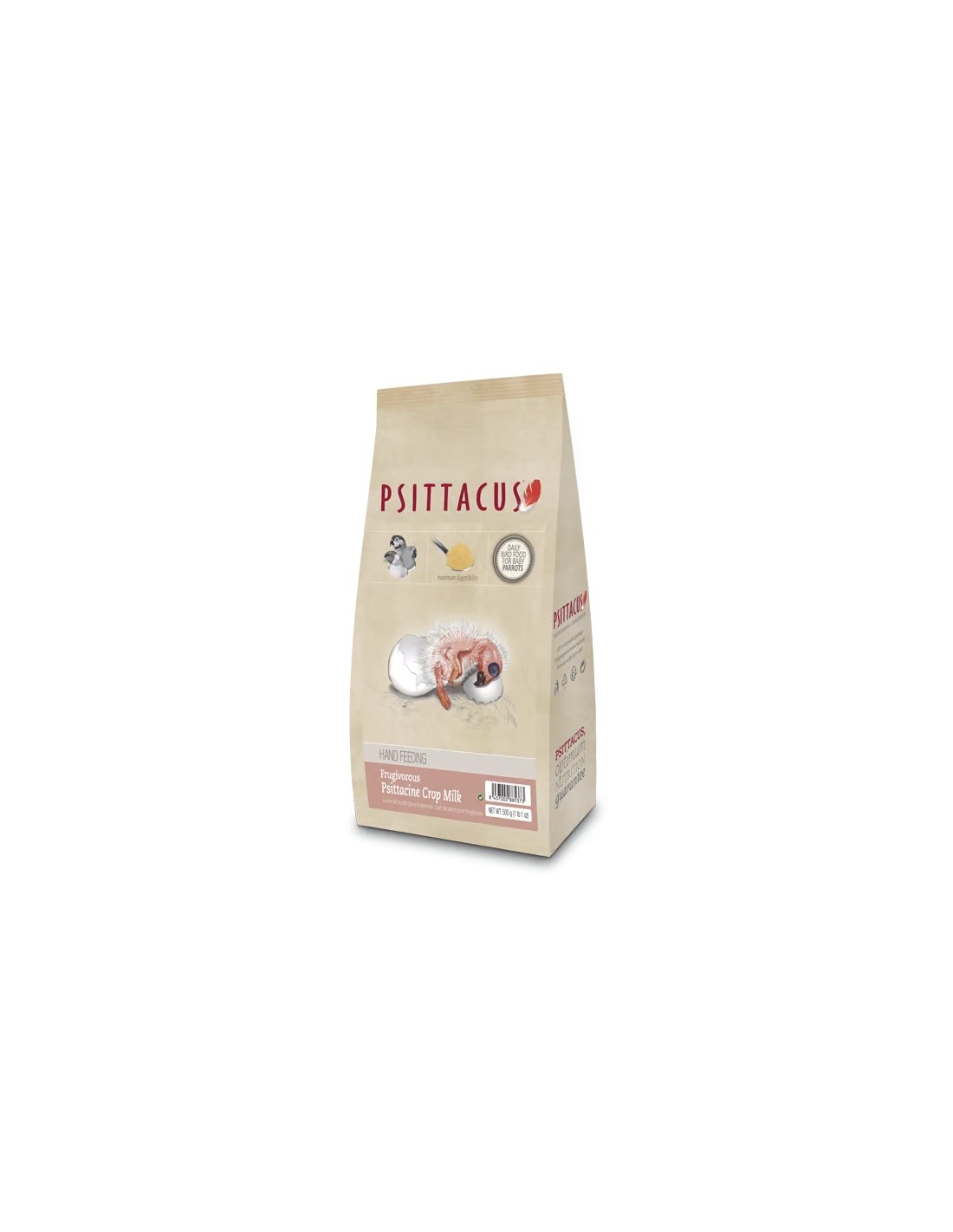 El PSITTACUS FRUGIVOROUS PSITTACINE CROP MILK - 500 GR es una papilla de alta concentración y digestibilidad, especialmente diseñada para la cría manual de polluelos de psitácidos frugívoros en su etapa neonatal.