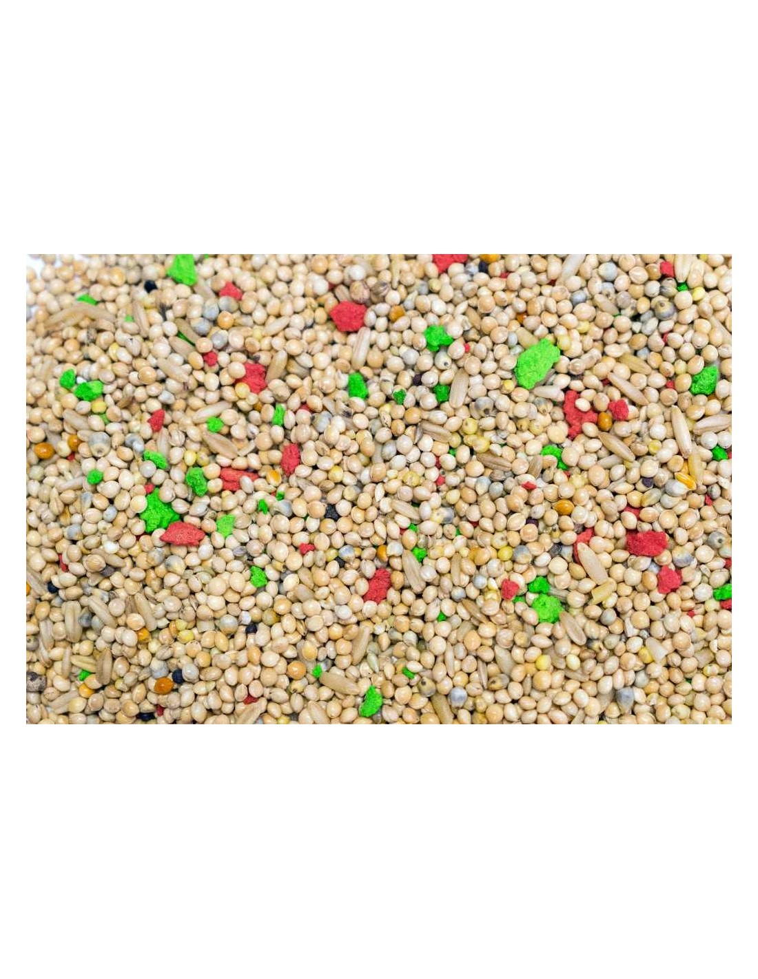 Mixtura para ninfas y agapornis.ComposiciónTrigo, avena, pipa Iregui, cacahuete, panicillo, alazor, alpiste, mijo (amarillo, rojo, blanco), nabina, linaza, cañamón.Componentes analíticos:- Proteína bruta 11,42%- Grasa bruta 8,14%- Fibra 14,71%- Cenizas 2,29%- Humedad 5,99%###
