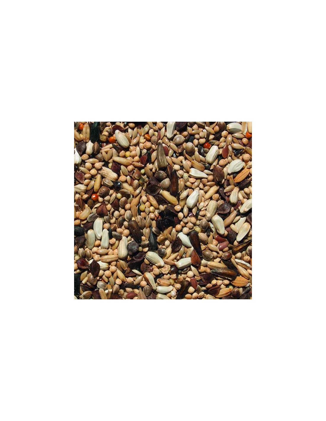 Alpiste, mijo amarillo, mijo rojo, avena pelada, linaza, cañamones, negrillo, mijo japones, arroz partido, trigo blando, alazor, trigo sarraceno y pipa negra diminuta.