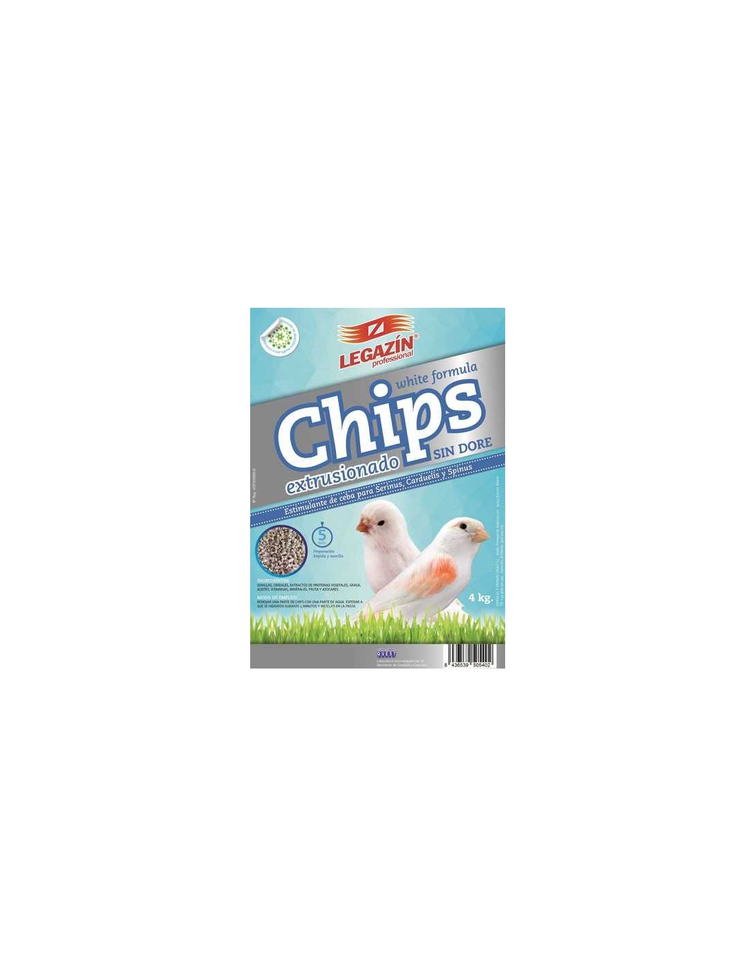 Legazín Chips Extrusionado Sin Doré es un estimulante de ceba sin doré para Serinus, Carduelis y Spinus.