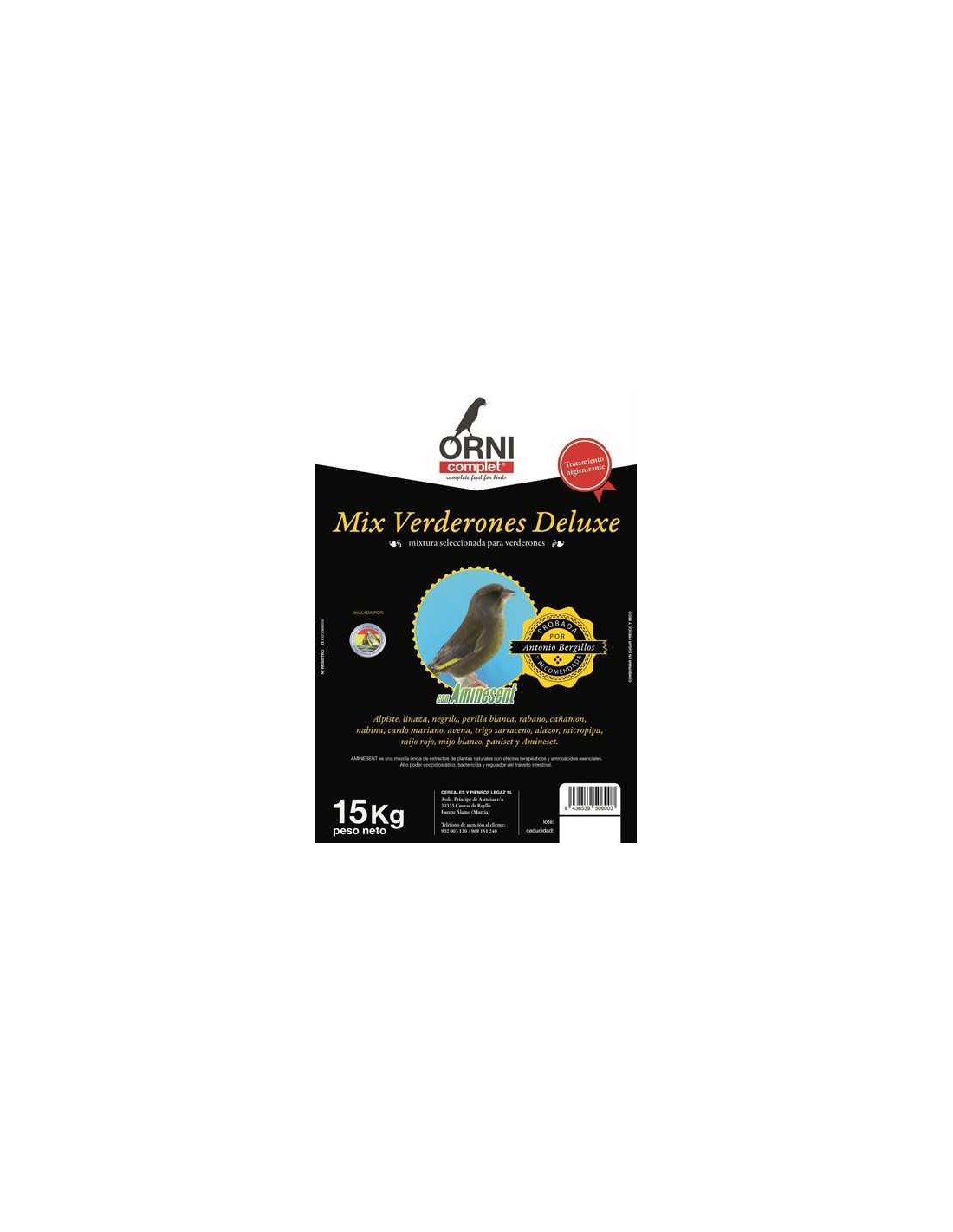 La mixtura Orni Complet Mix Verderones Deluxe es una mezcla premium de semillas de primera calidad especialmente formulada para verderones.