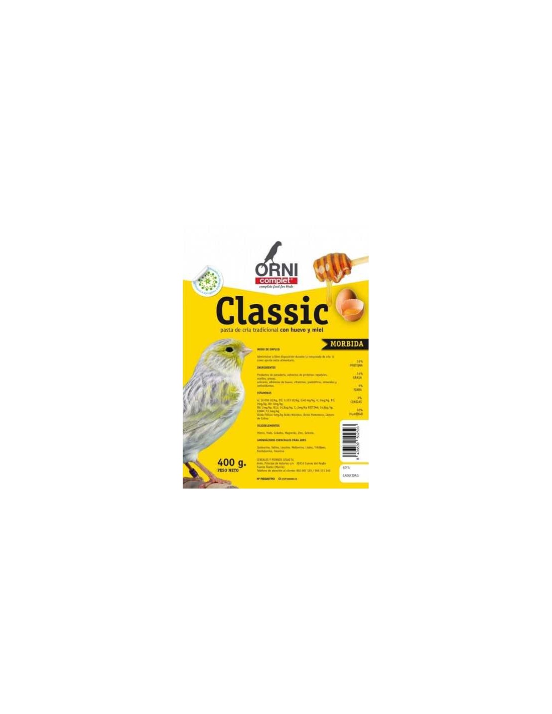 El ORNI COMPLET CLASSIC MÓRBIDA AMARILLA es una pasta de cría de alta calidad, diseñada para satisfacer las necesidades nutricionales de tus aves.
