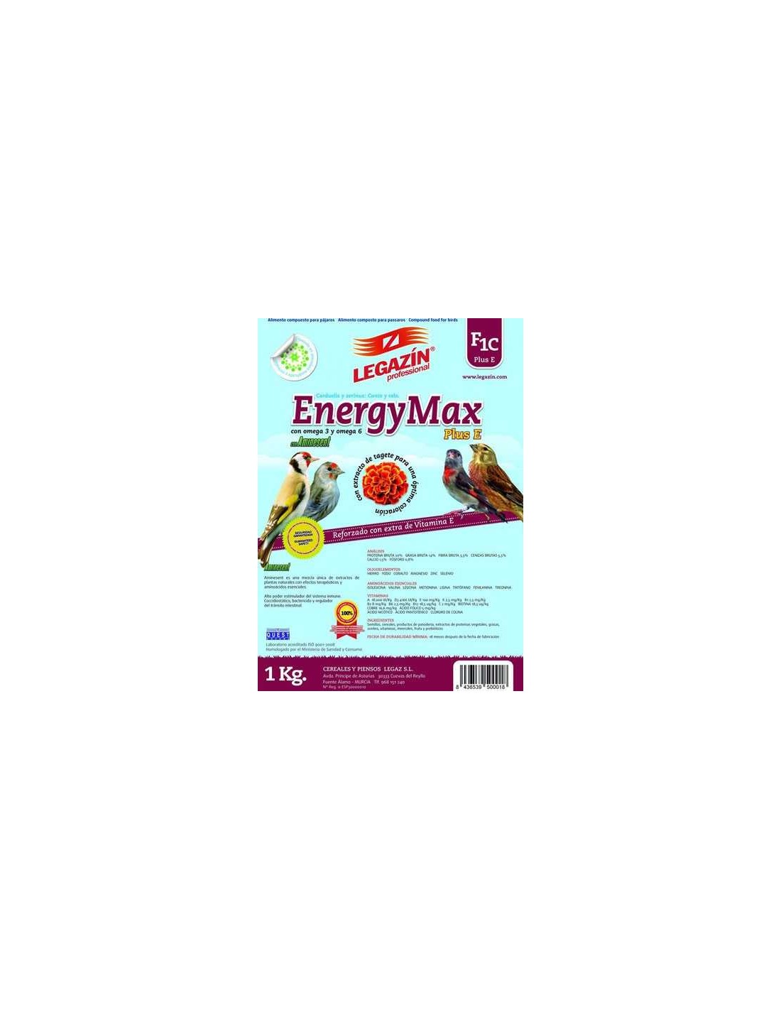 El pienso Legazín F1C Energy Max Plus E es un alimento granulado con todos los ingredientes y vitaminas que sus aves necesitan para estar saludables.