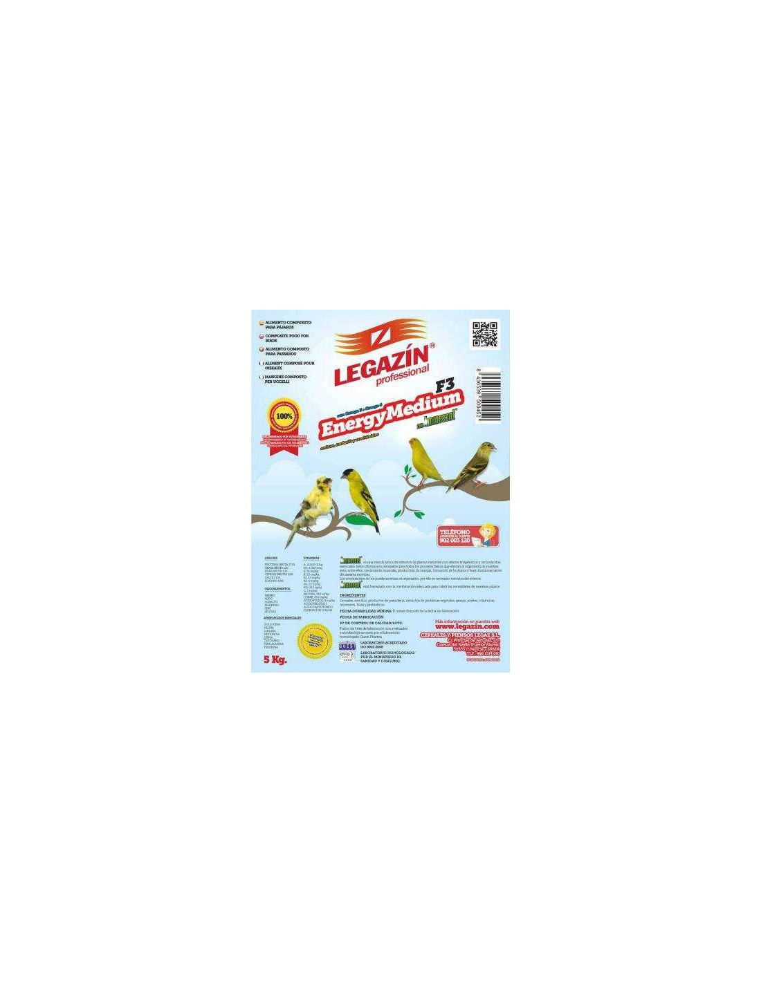 El pienso Legazín F3 Energy Medium es un alimento granulado para canarios y silvestres con todos los ingredientes y vitaminas que sus aves necesitan para estar saludables.