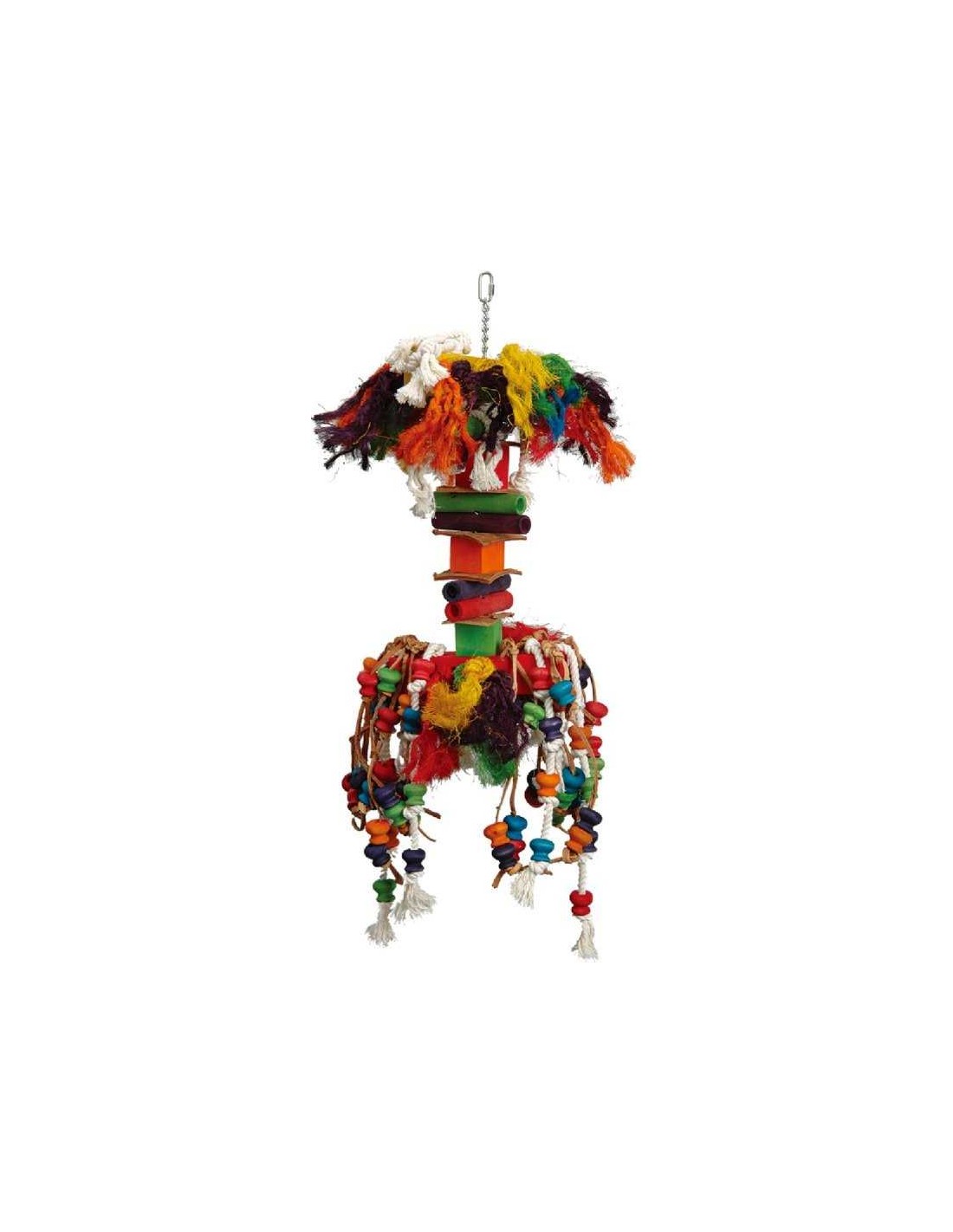 Perfecto para cualquier hogar con loros grandes, este juguete es una excelente adición para el bienestar de tu ave.