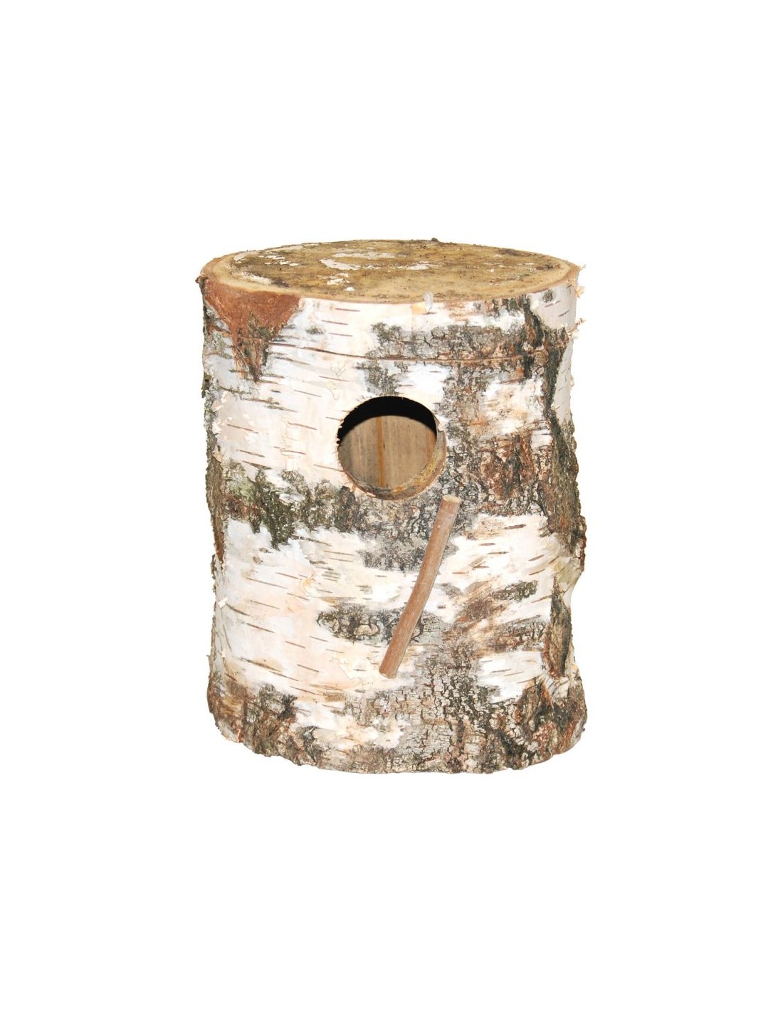Nido natural realista para loros pequeños fabricado a partir de un tronco de Abedul hueco.