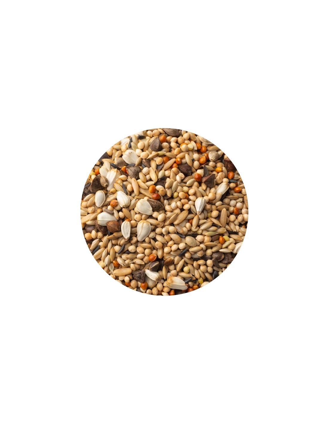 Esta fórmula incluye ingredientes naturales de alta calidad como alpiste, mijo blanco, avena pelada, cártamo, mijo rojo, negrillo, sarraceno, linaza y cañamón.