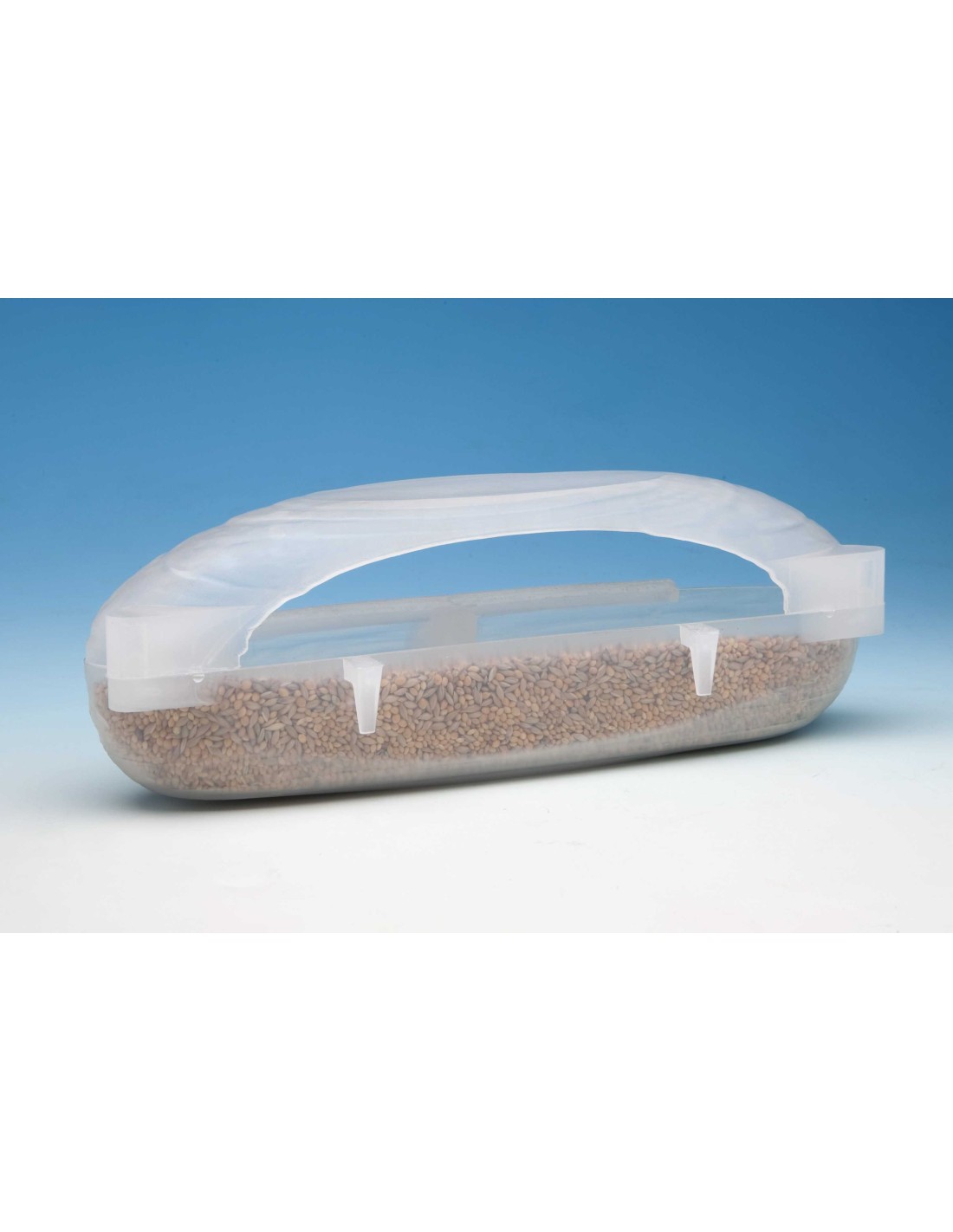 Dispone de una tapadera que ayuda a evitar que los pájaros tiren alimento, y se puede abrir para facilitar su rellenado e higiene.
