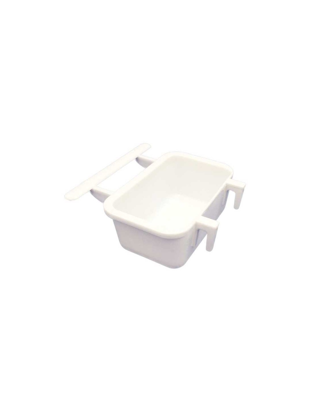 Comedero universal para pequeños pájaros.Su diseño, lo hace válido tanto para colocar en el exterior de jaulas portuguesas o italianas, con su pata delantera, o en el interior de jaulas o valderas con sus ganchos traseros.###