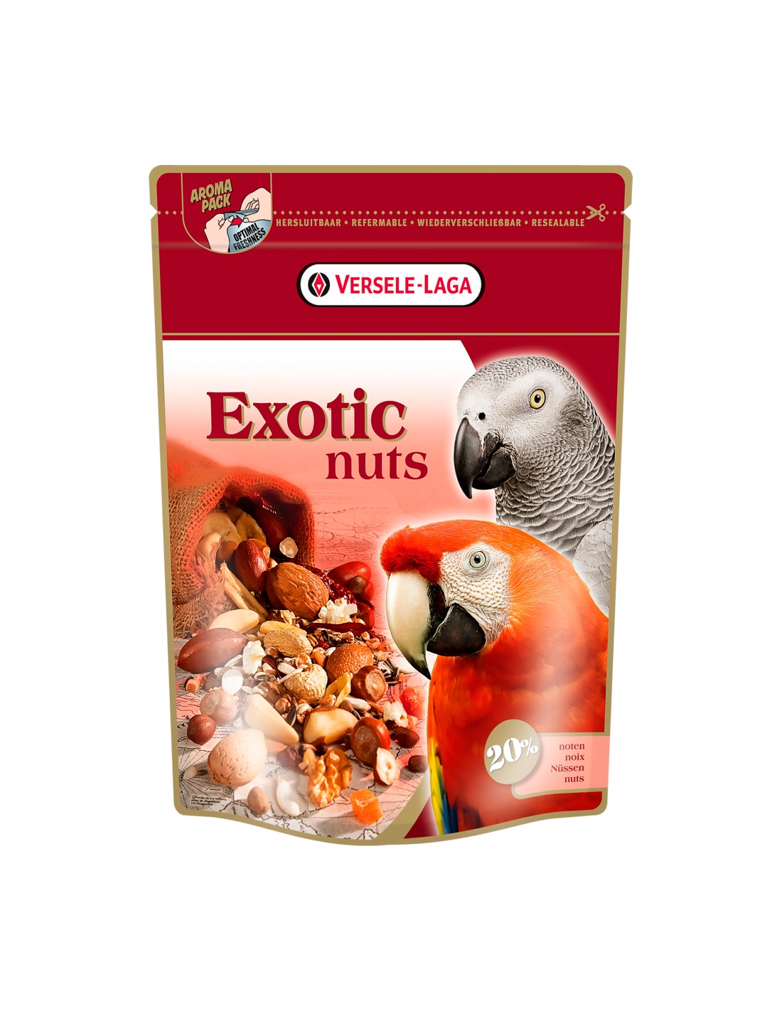 Versele-Laga Exotic Nuts es una mezcla premium de cereales, semillas y frutos secos especialmente formulada para loros y cotorras.
