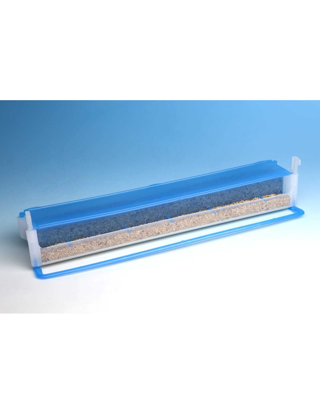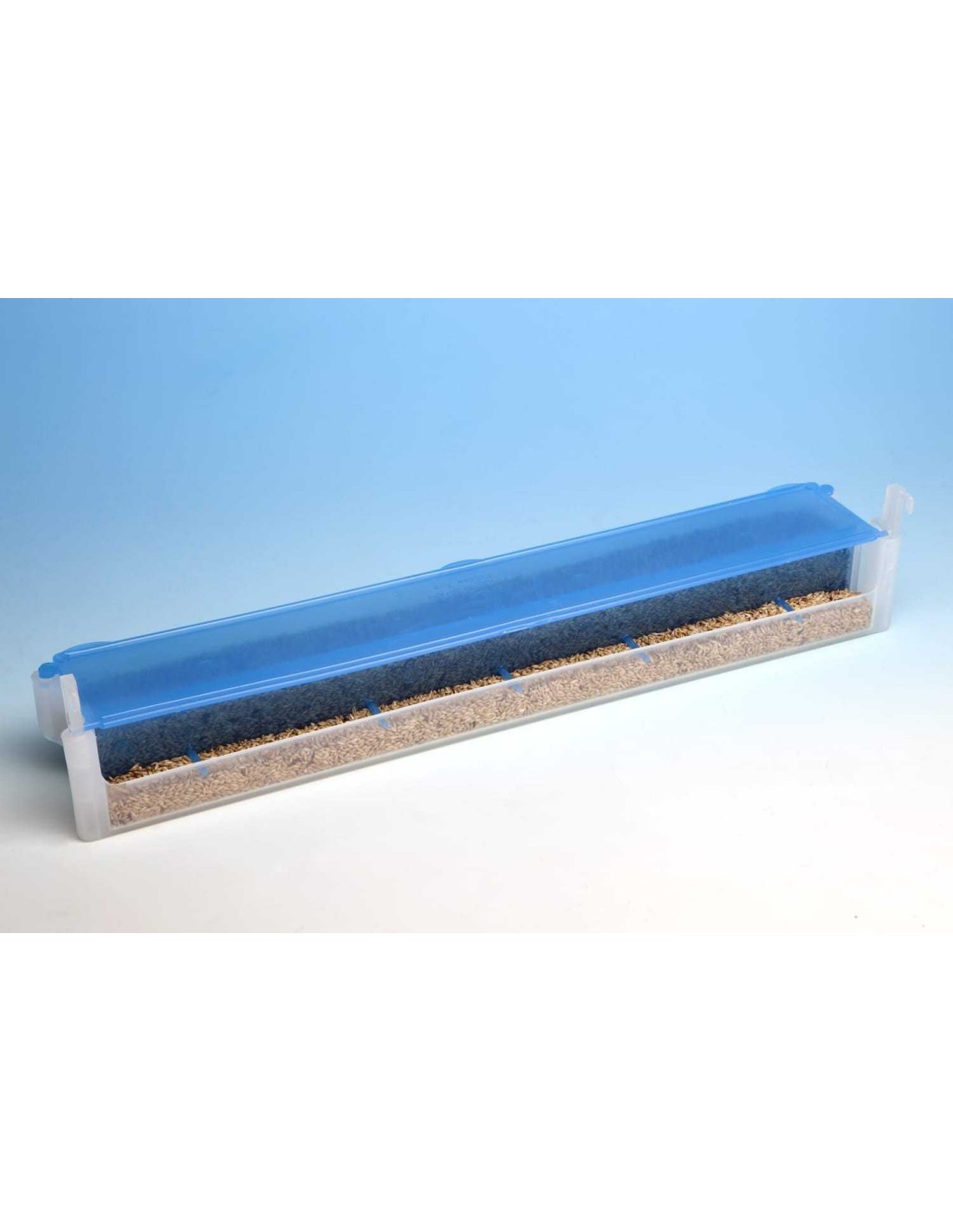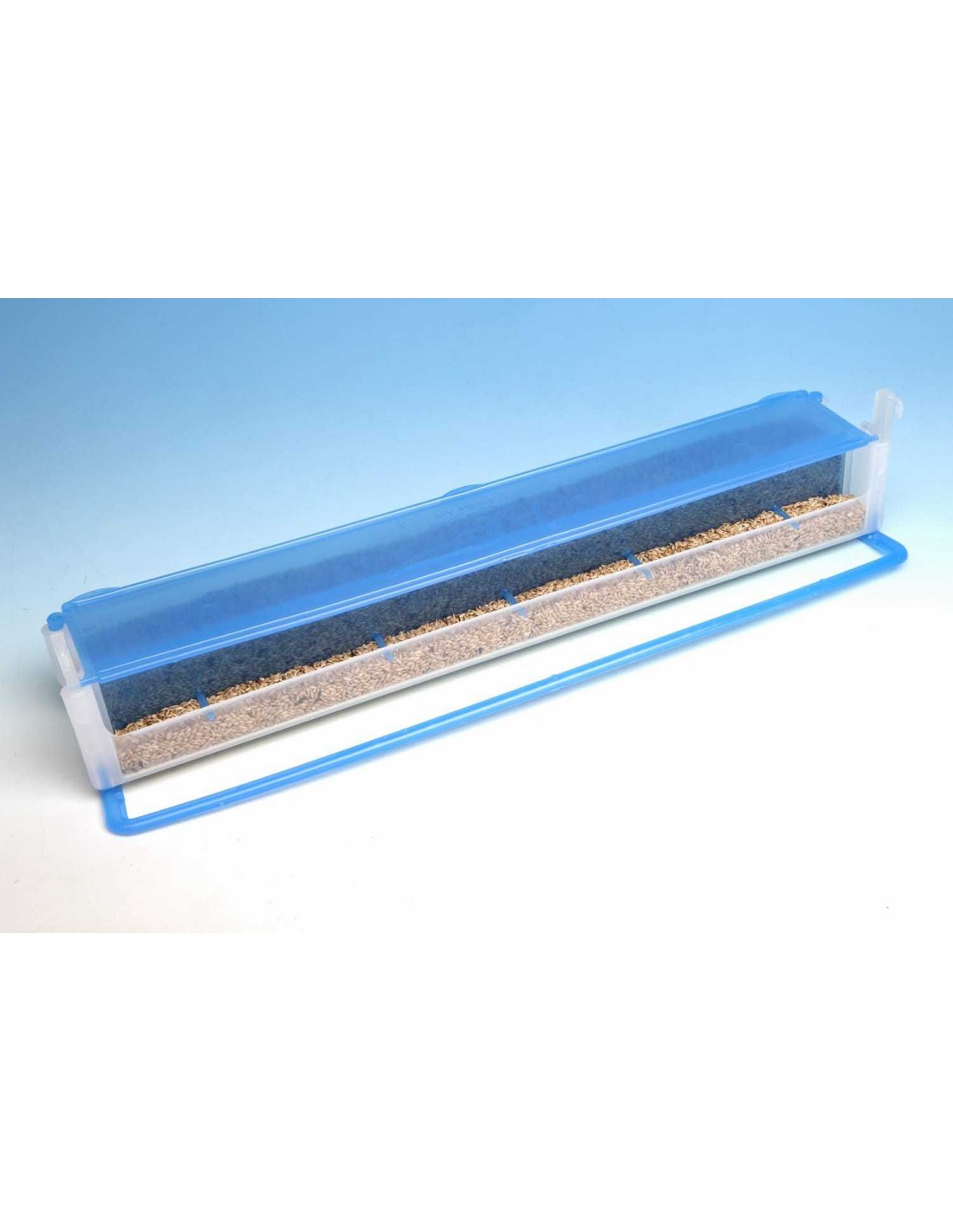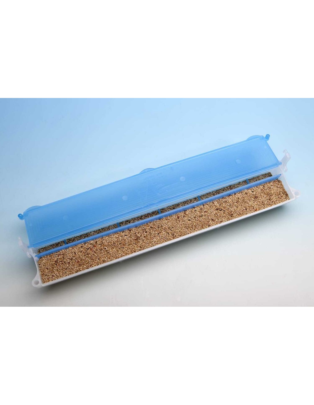 Su exclusivo diseño tipo tolva, permite que los pájaros tengan siempre disponible comida limpia, y evita que deperdicien mucha comida.
