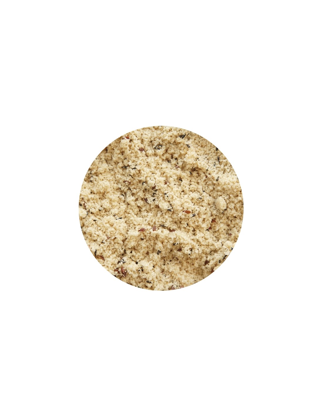 Esta pasta blanca húmeda está formulada con productos de panadería, extractos de proteínas vegetales, aceites y grasas, azúcares diversos, cereales, minerales, semillas y derivados del huevo (clara), y levadura.