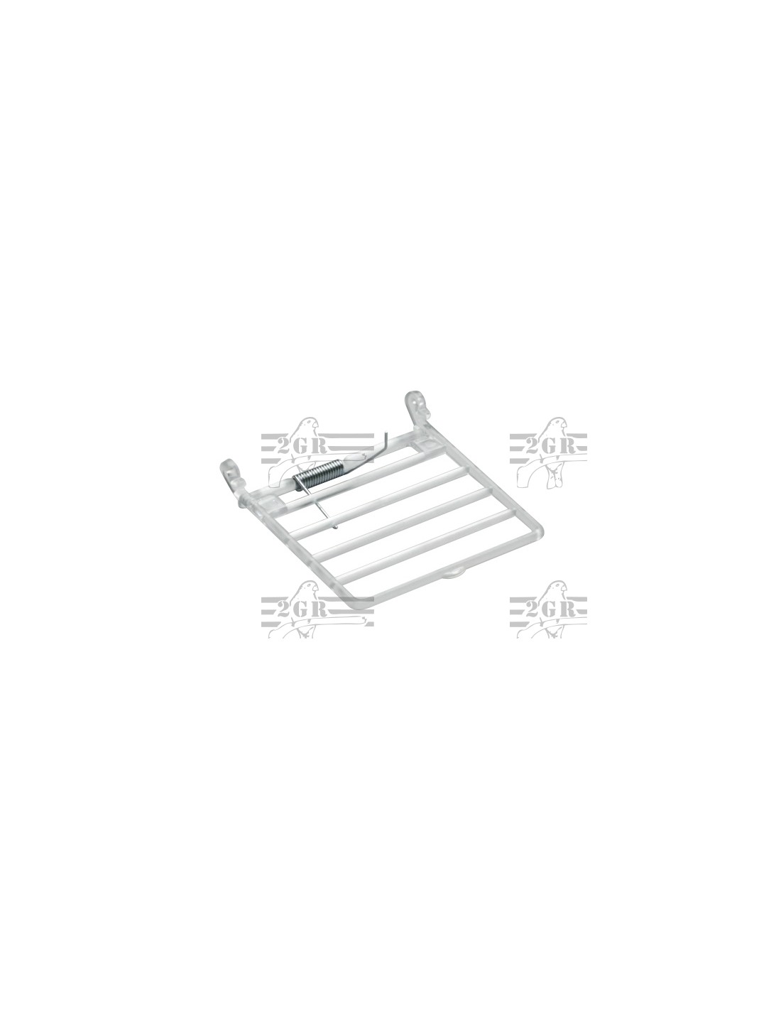 Fabricada en plástico resistente, esta puerta se ajusta perfectamente a las jaulas de barrote vertical, cerrando los agujeros de los comederos y evitando que las aves escapen.
