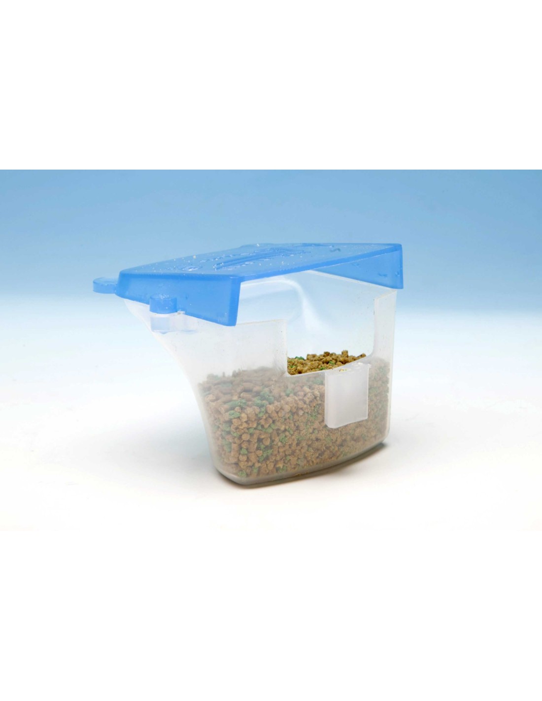 Con tapa deslizable para facilitar el rellenado del comedero y extraible para facilitar la limpieza.