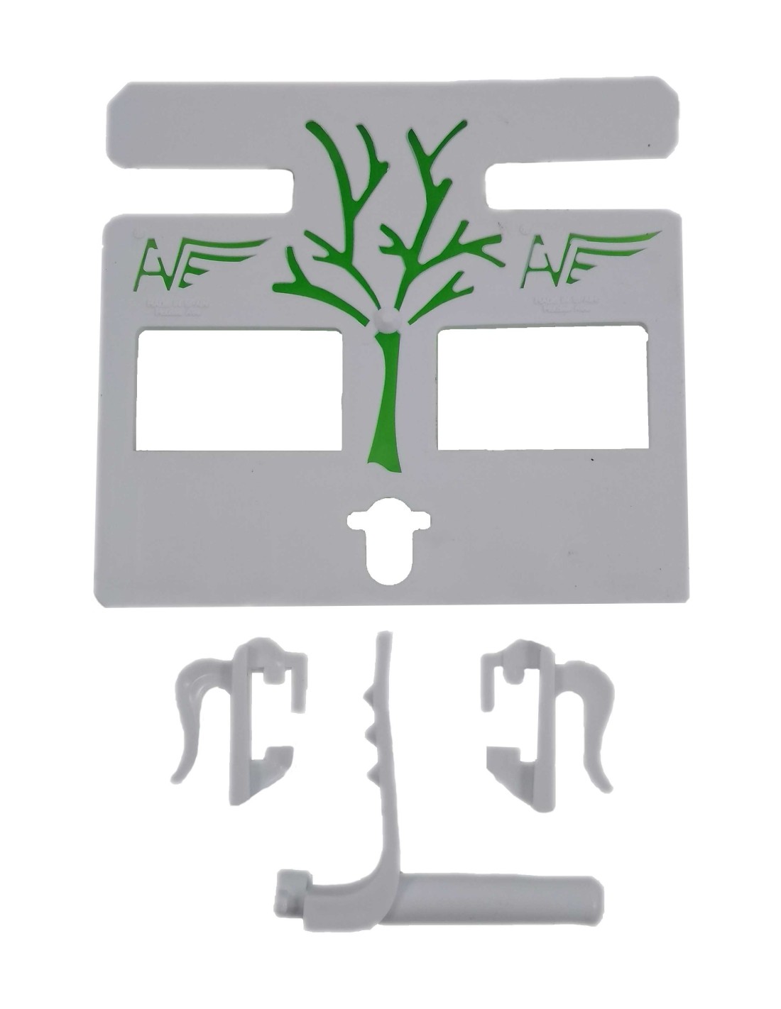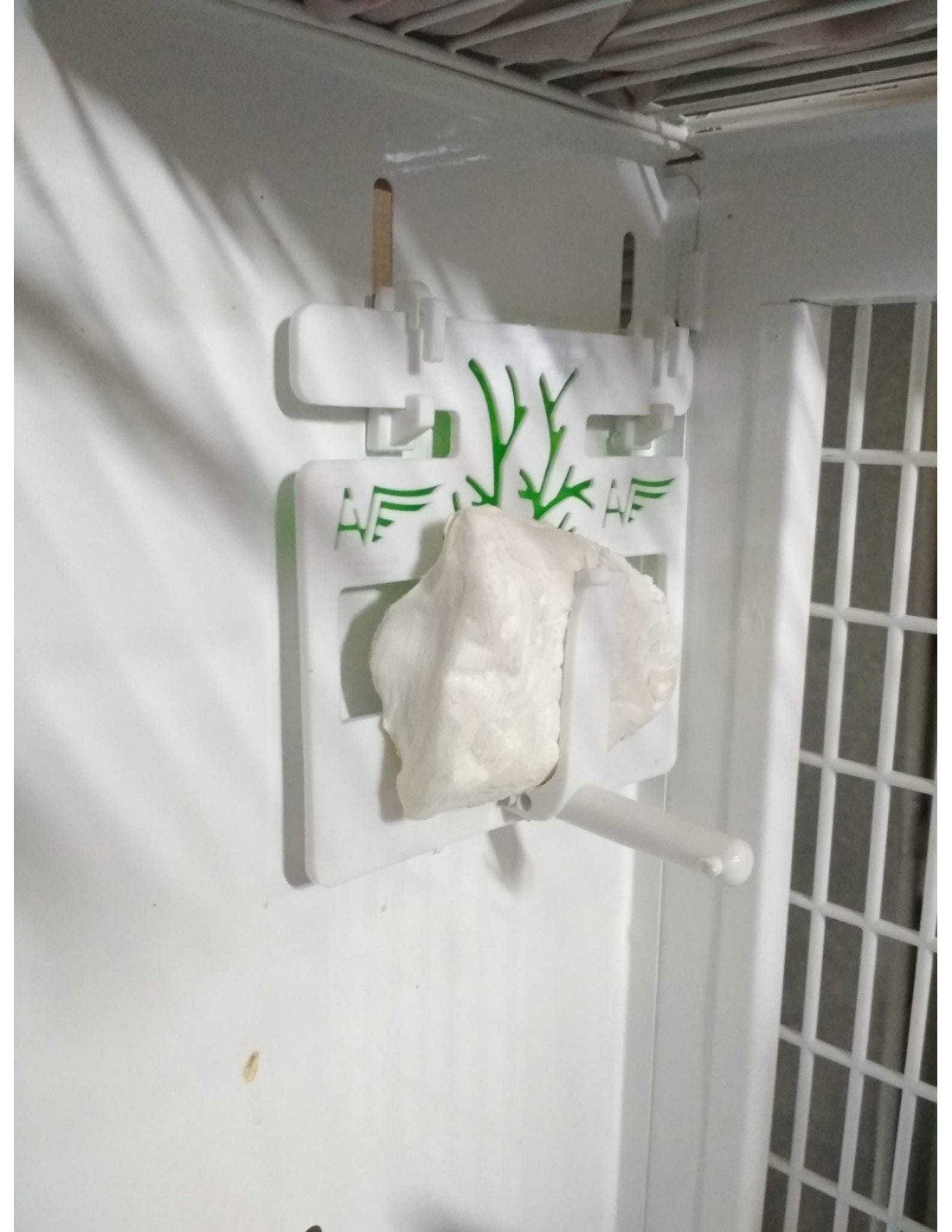 En el soporte KM se pueden colocar el nido Nicolás, Bizcochera Más, comedero voladera, y el resto de complementos de Moldes Ave.
