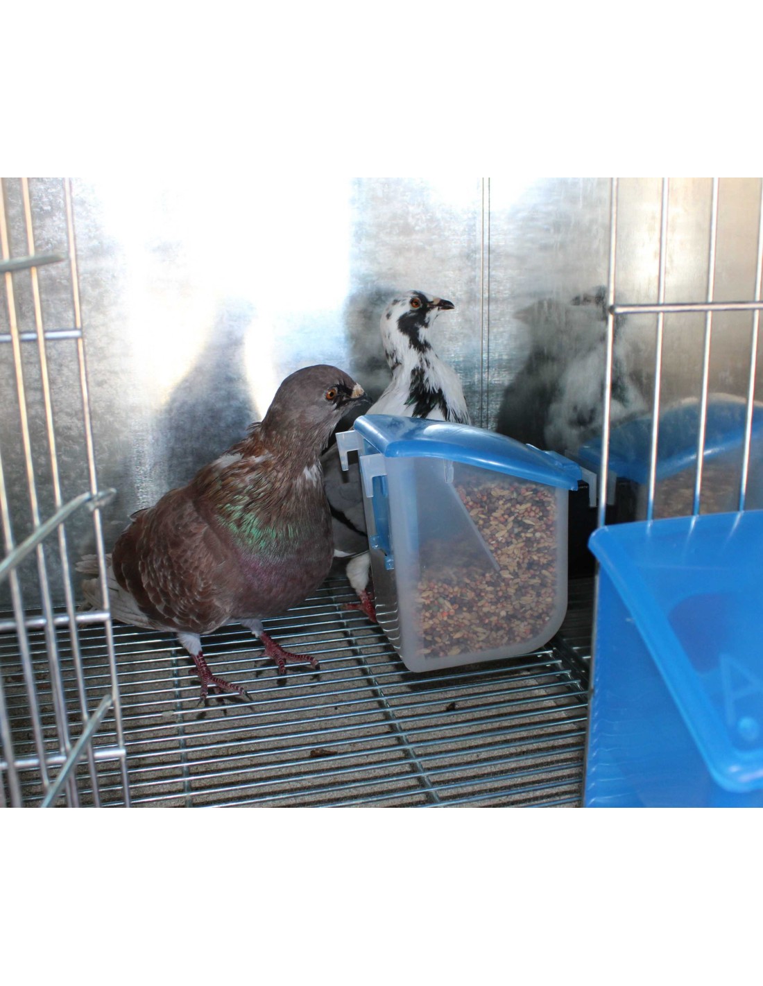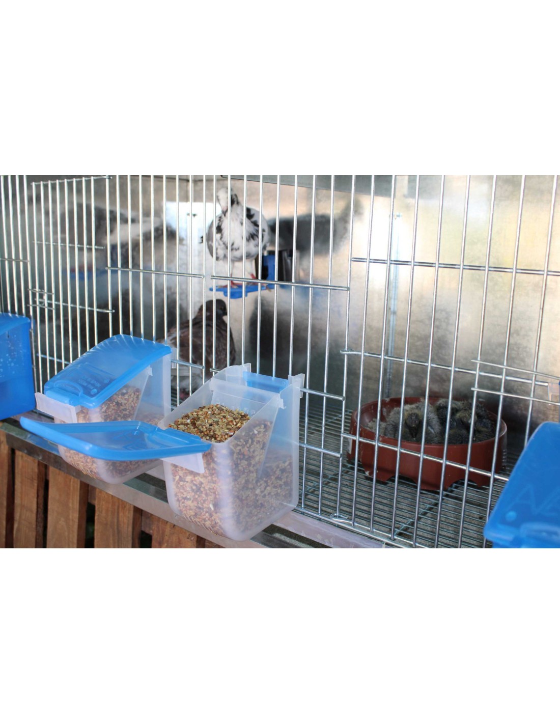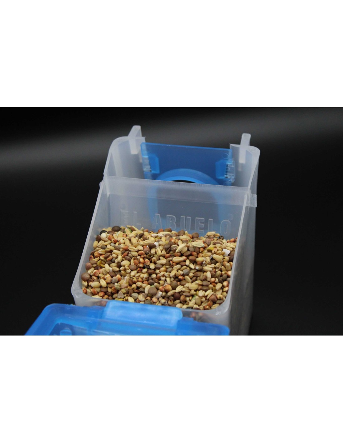 El comedero modelo El Abuelo de Moldes Ave es un comedero tipo tolva para palomos, con una capacidad de hasta 500 gr de mixtura, válido para colocar tanto en la parte exterior como en la parte interior del pelechero o palomar, gracias a su soporte incluido.