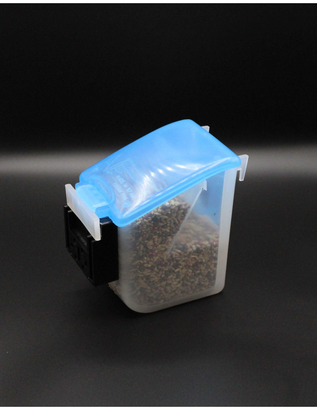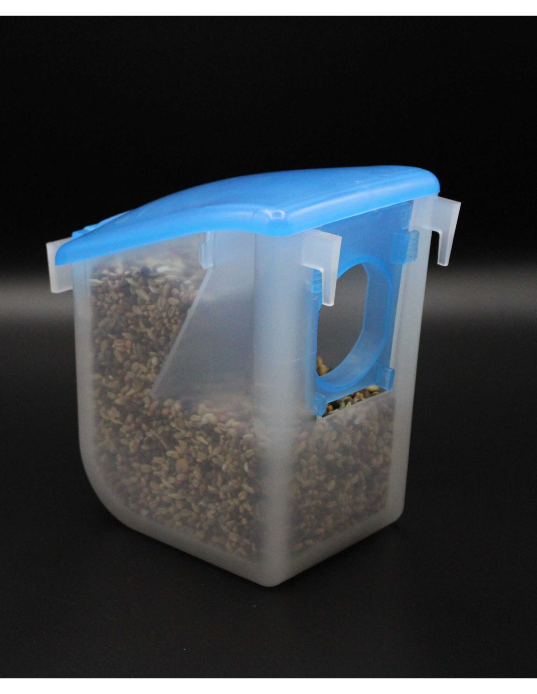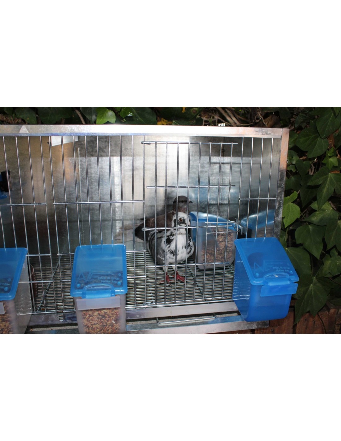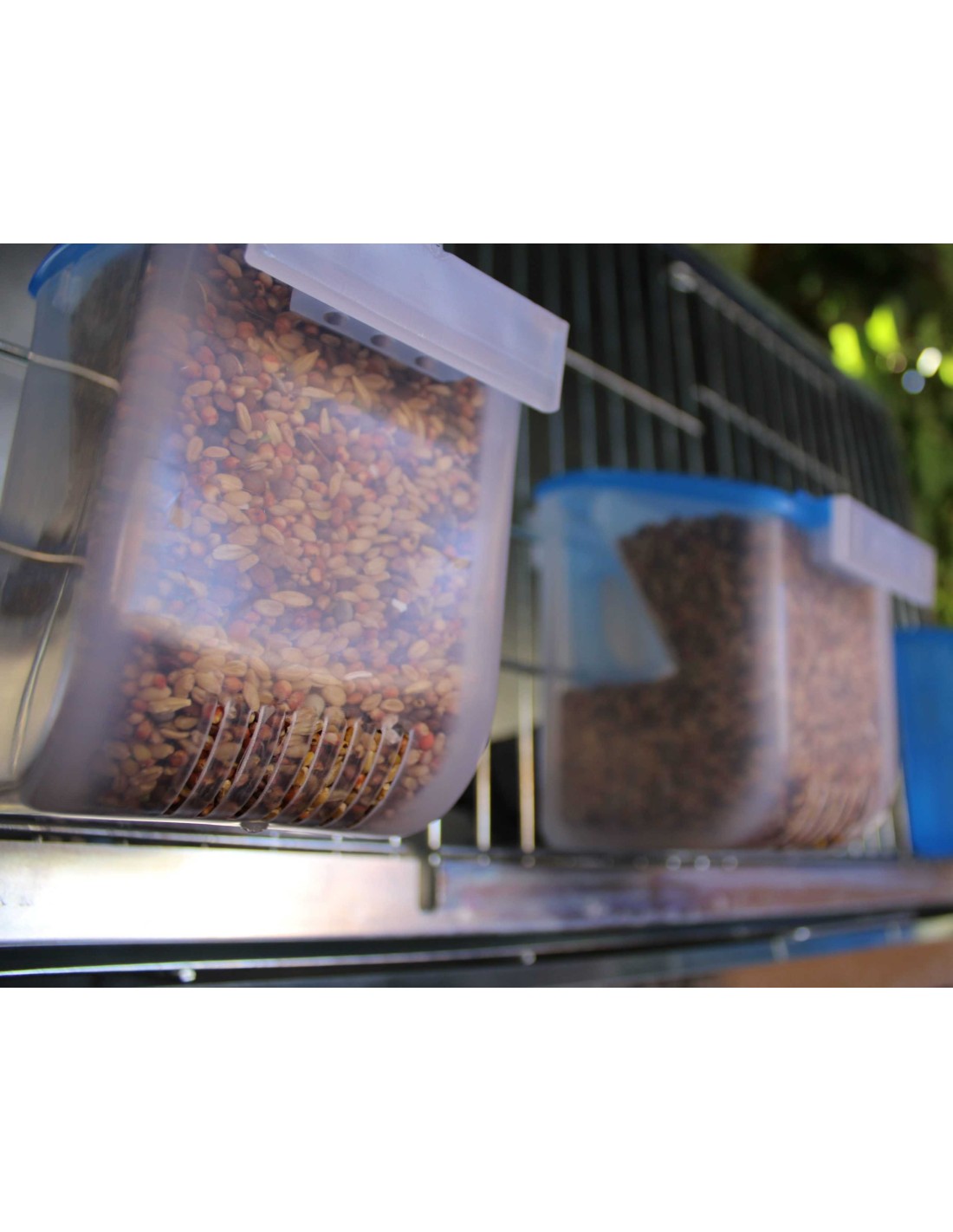 El comedero modelo El Abuelo de Moldes Ave es un comedero tipo tolva para palomos, con una capacidad de hasta 500 gr de mixtura, válido para colocar tanto en la parte exterior como en la parte interior del pelechero o palomar, gracias a su soporte incluido.