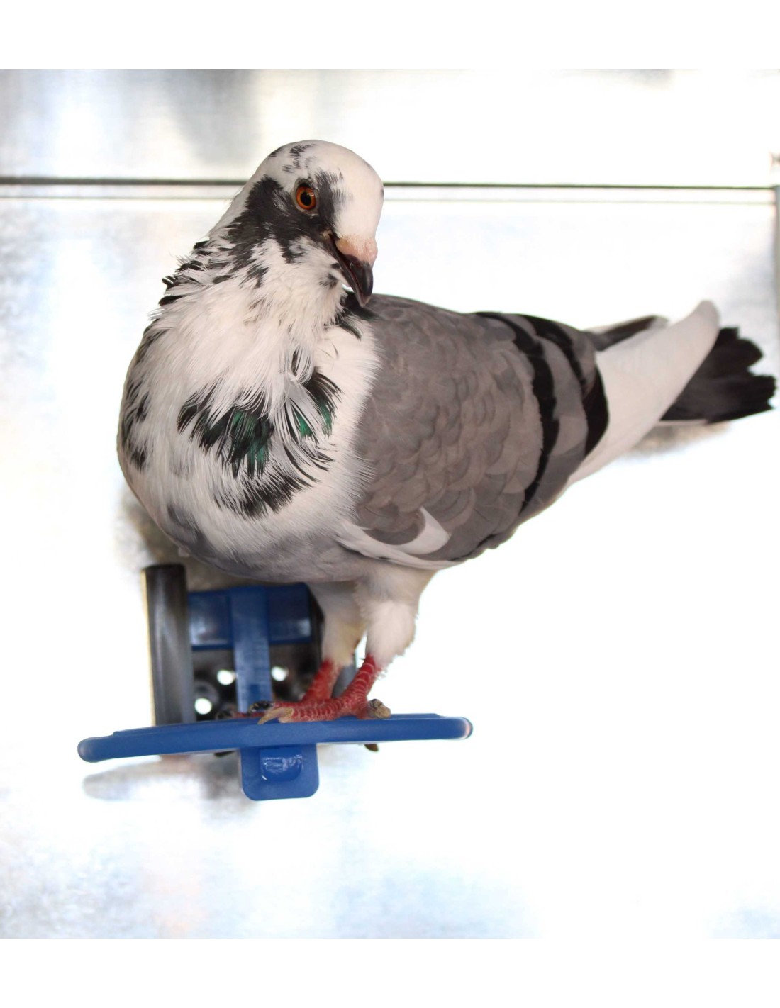 El posadero con soporte para palomos de Moldes Ave es un accesorio ideal para palomos, que se puede acoplar fácilmente a cualquier pelechero o pared simplemente atornillando la pieza negra que incluye.