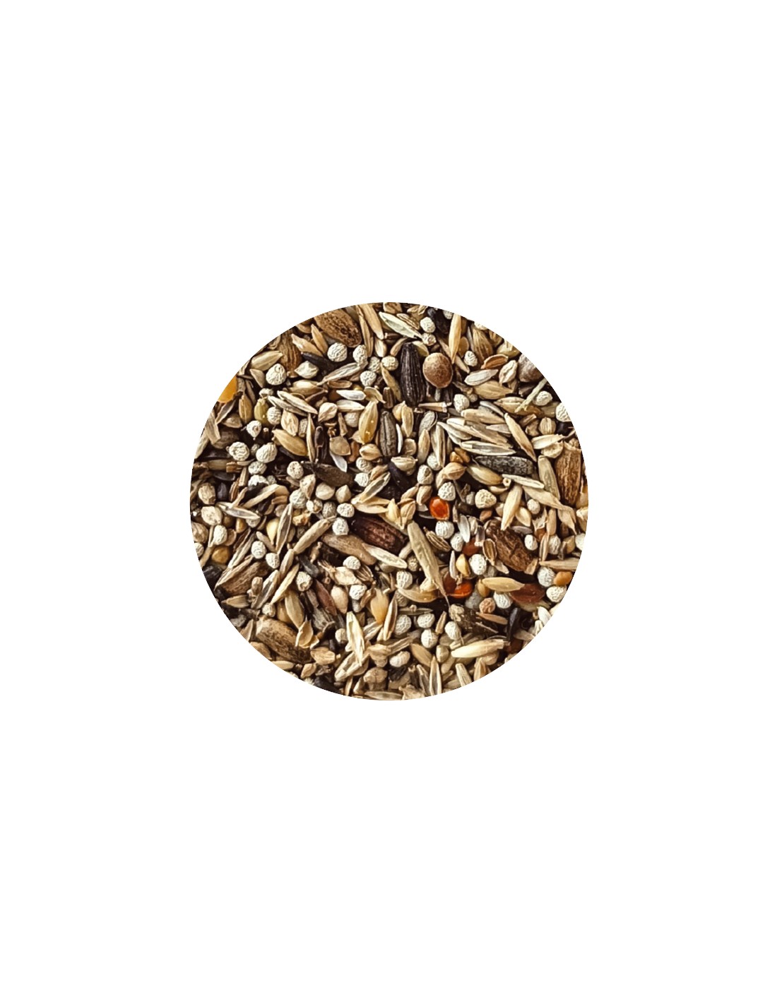 Esta formulación combina una variedad de semillas de alta calidad, granos y cereales, enriquecidos con vitaminas y minerales esenciales que promueven la salud y el bienestar general de tus aves.