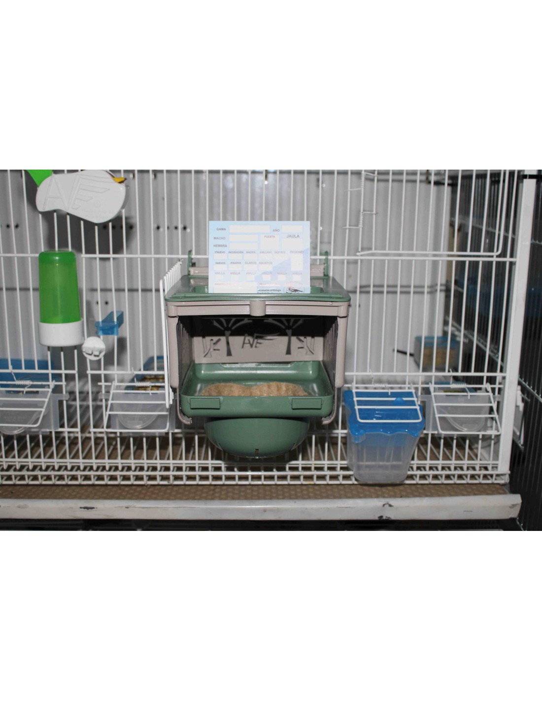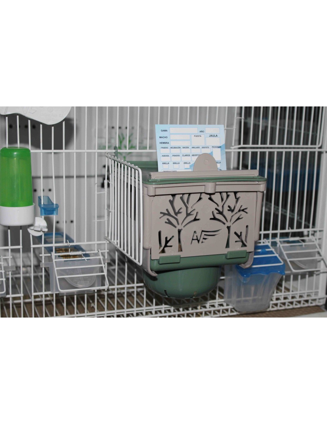 Con cajón inferior totalmente extraíble, para poder acceder bien a los huevos y las crías, y con ventilación en paredes y fondo del nido.