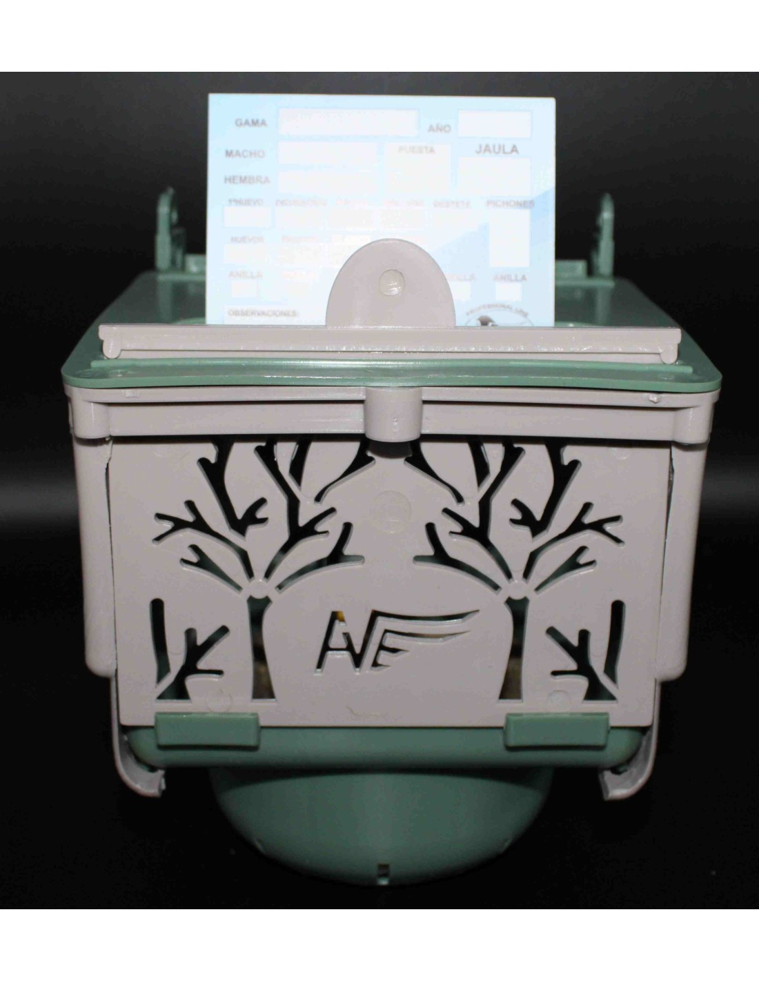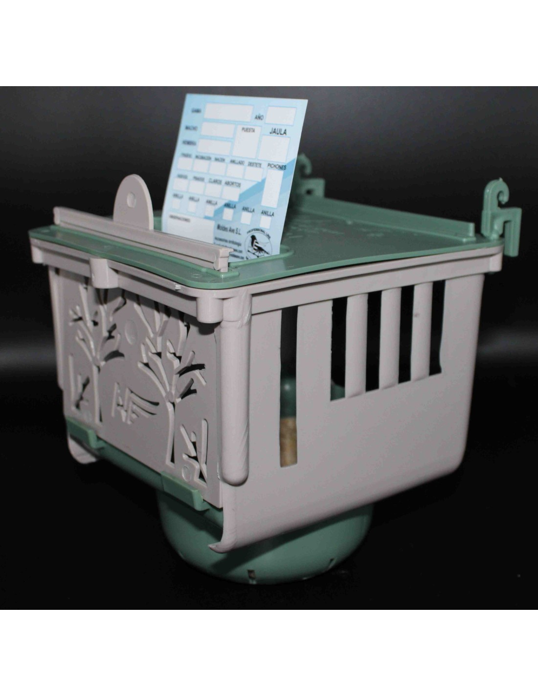 Incluye un departamento con tapadera, para almacenar los huevos y colocar la tarjeta de cría de Moldes Ave.