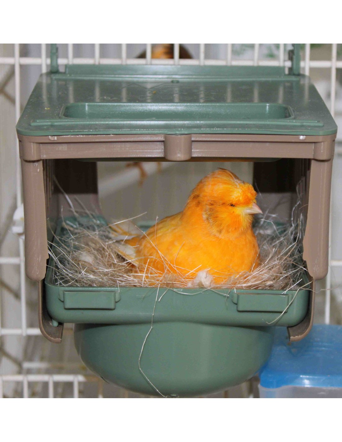 El nido exterior Modelo Dubai de Moldes Ave, es un nido adaptable a todo tipo de jaulas, tanto jaulas con puerta de muelle como con puerta de guillotina.