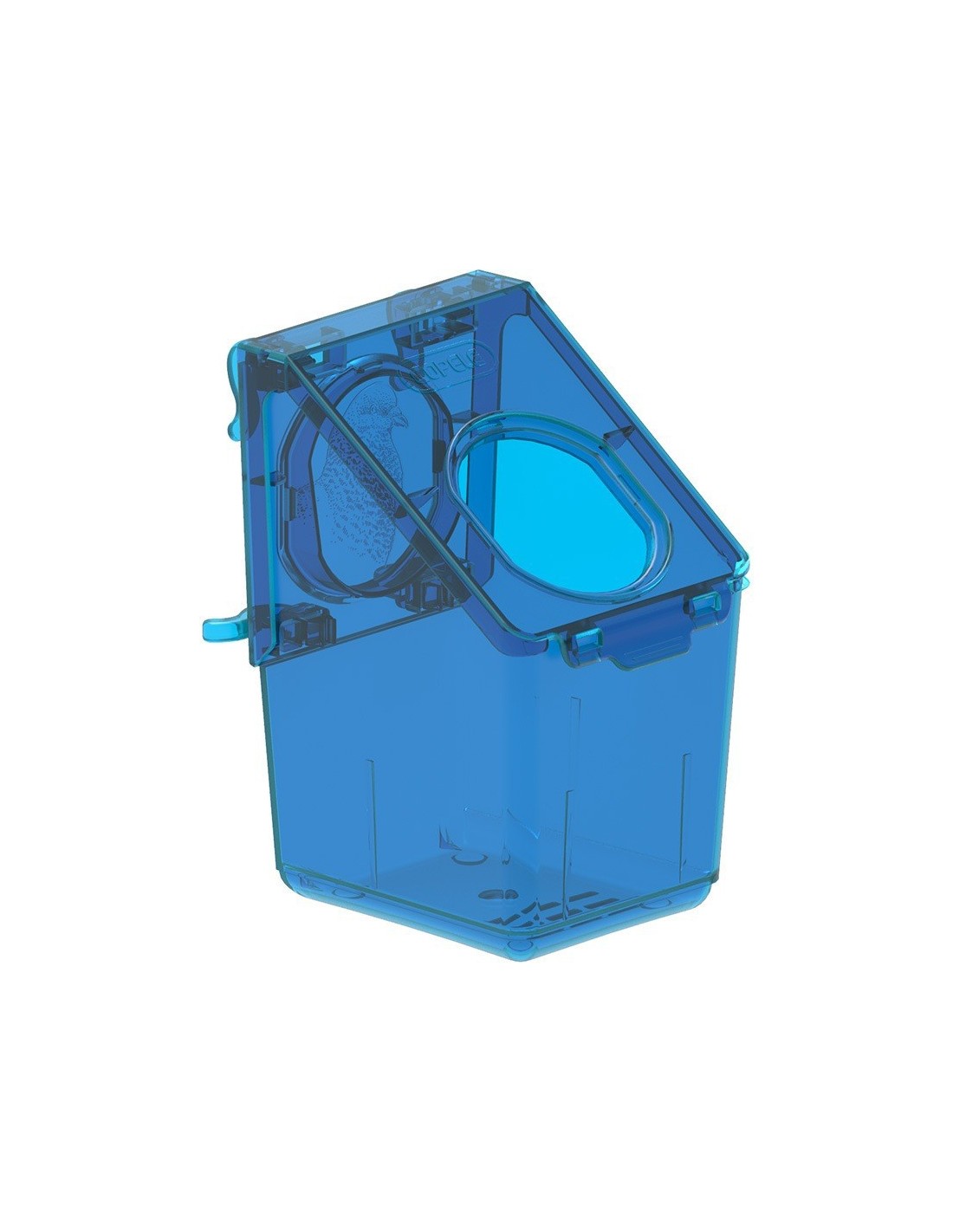 Fabricado con plástico resistente y translúcido, permite controlar fácilmente el nivel de alimento y asegura que tus palomas siempre tengan acceso a su comida.
