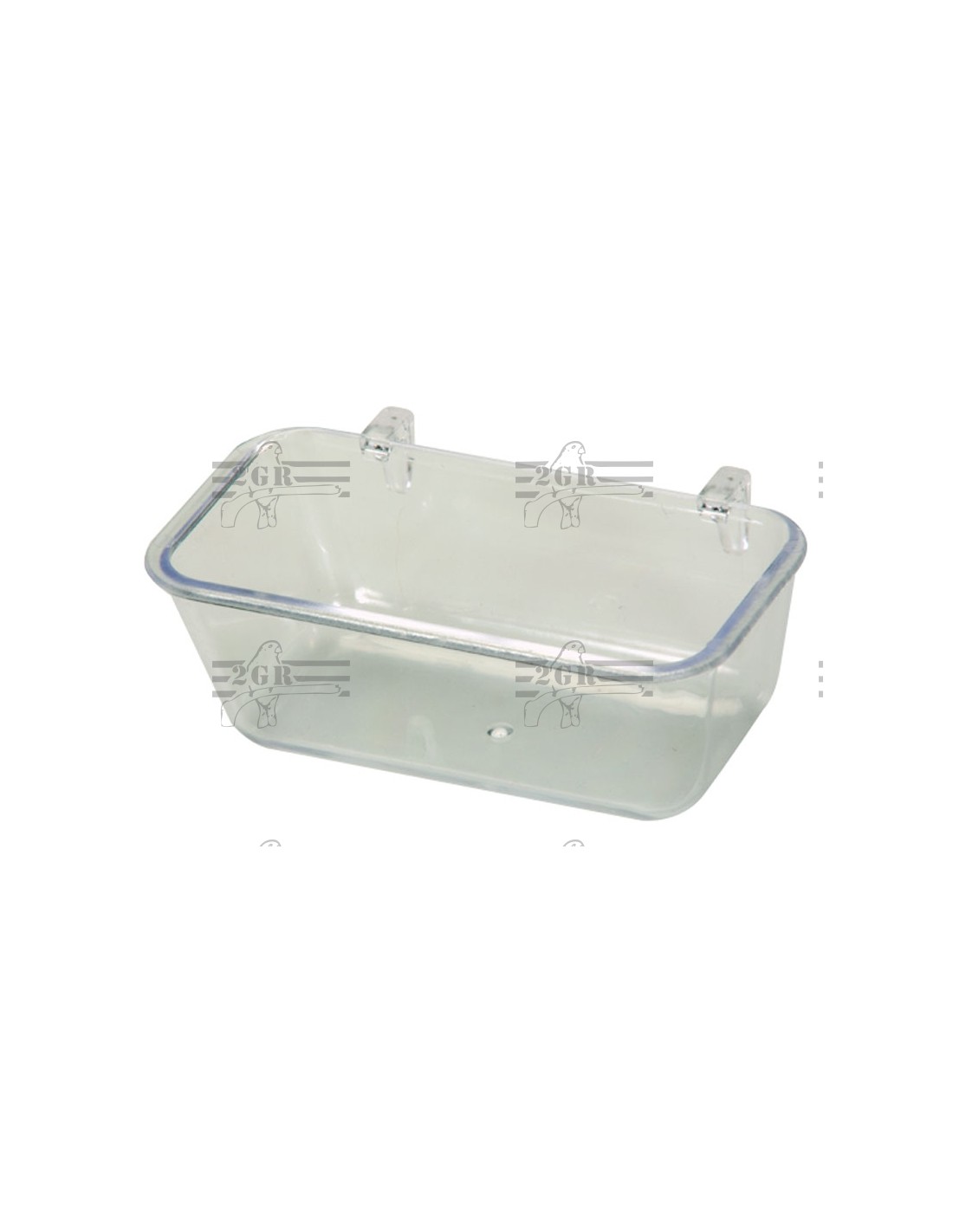 La BIZCOCHERA / COMEDERO CON GANCHOS DE PLÁSTICO 2G-R es una solución práctica y duradera para alimentar a tus aves.
