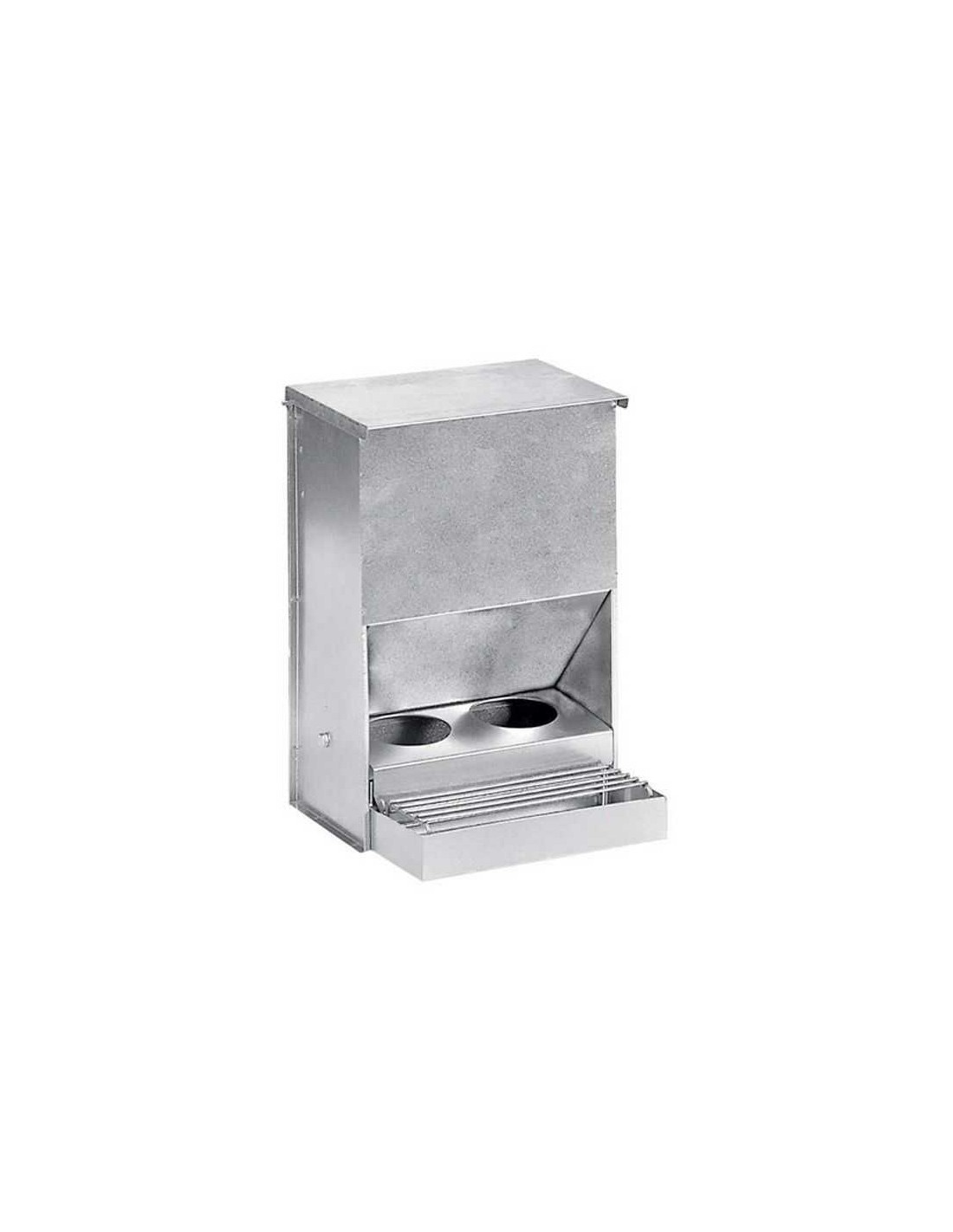 Fabricado con materiales duraderos como el latón, este comedero cuenta con una capacidad de 25 cm, ideal para mantener el alimento fresco y protegido de roedores y condiciones externas.
