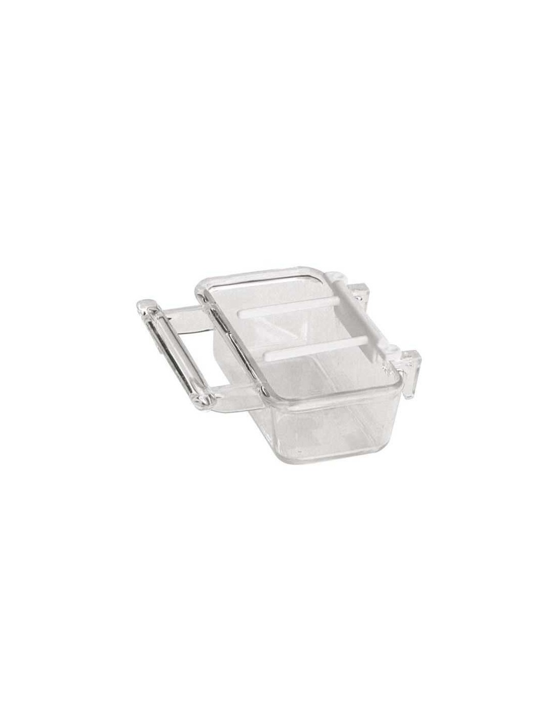 Diseñada con materiales duraderos y seguros, esta bizcochera cuenta con un rastrillo que permite a las aves alcanzar fácilmente el bizcocho y las semillas, evitando el desorden y el desperdicio de comida.