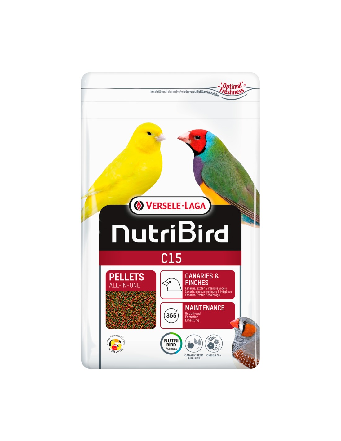 El NutriBird Canario C15 Mantenimiento de Versele-Laga es un alimento de alta calidad diseñado específicamente para canarios y fringílidos exóticos y europeos.