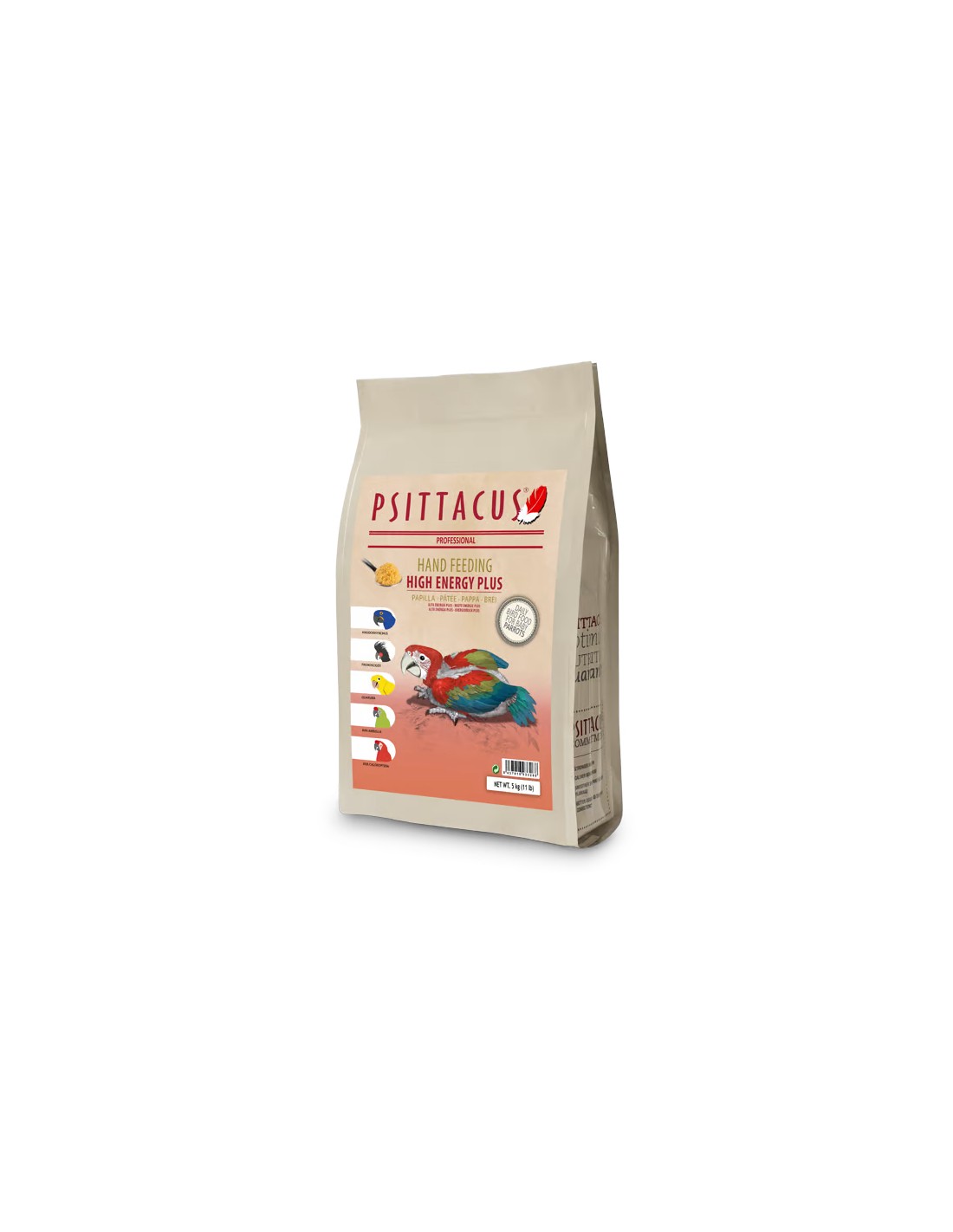 La Psittacus Papilla Alta Energía Hand Feeding Plus - 5 kg es la solución ideal para la cría manual de loros que requieren una dieta rica en grasas y nutrientes esenciales.