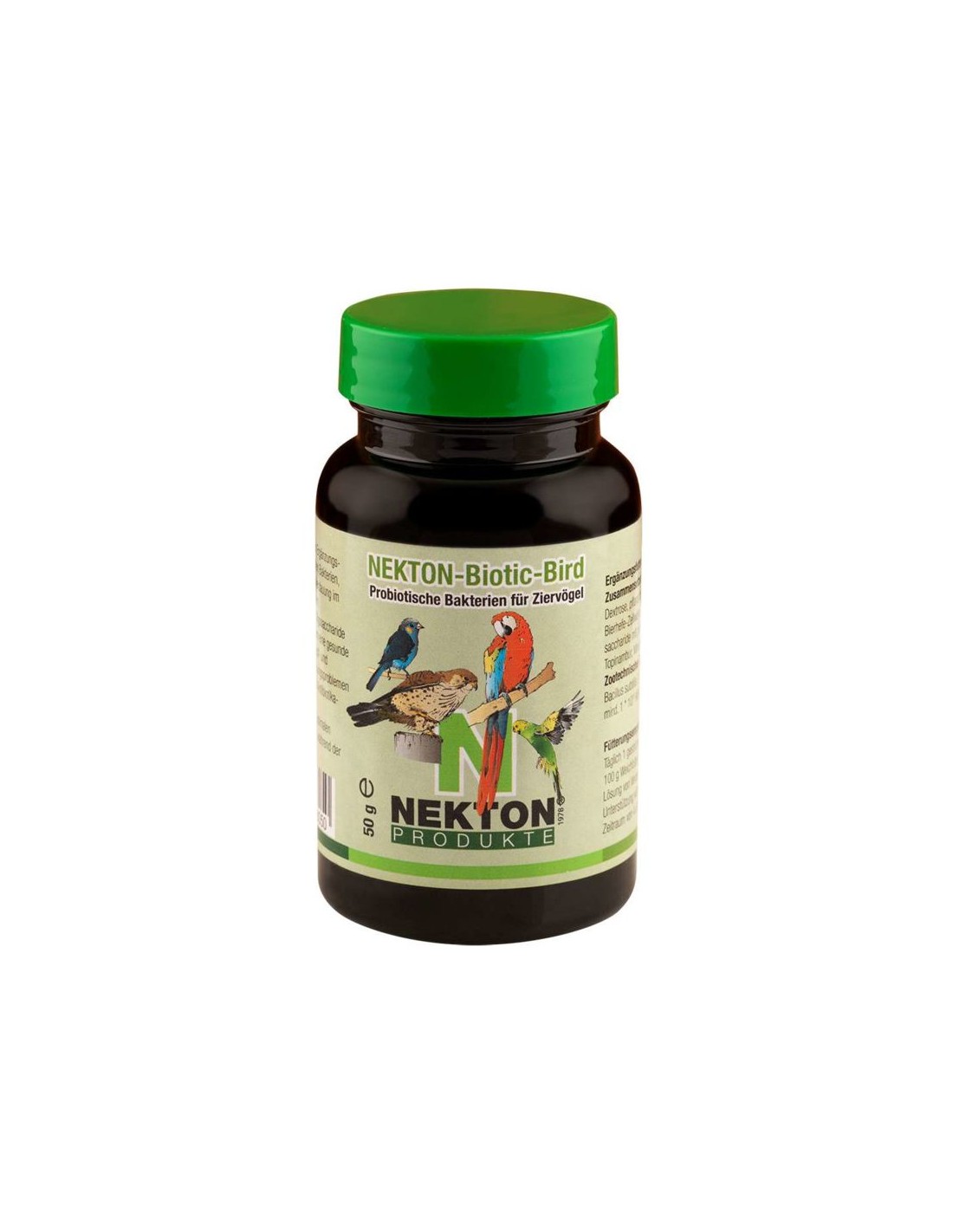 Mezclar diariamente 1 cucharilla medidora (1g) con 100 g de alimento húmedo. Proveer en los tratamientos de problemas digestivos o como apoyo durante la cría durante un periodo de 4-8 semanas. NEKTON-Biotic-Bird puede combinarse fácilmente con otros productos NEKTON.
