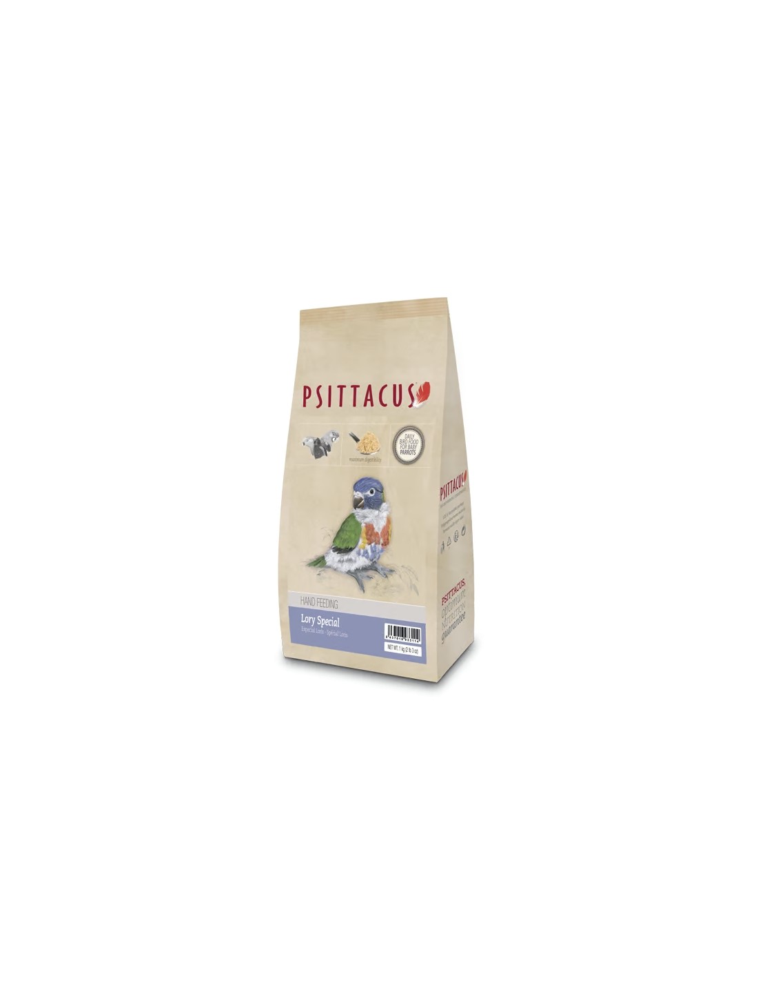 El Psittacus Papilla Especial Lory es una papilla de continuación formulada específicamente para criar manualmente polluelos de loros de la tribu Loriini.