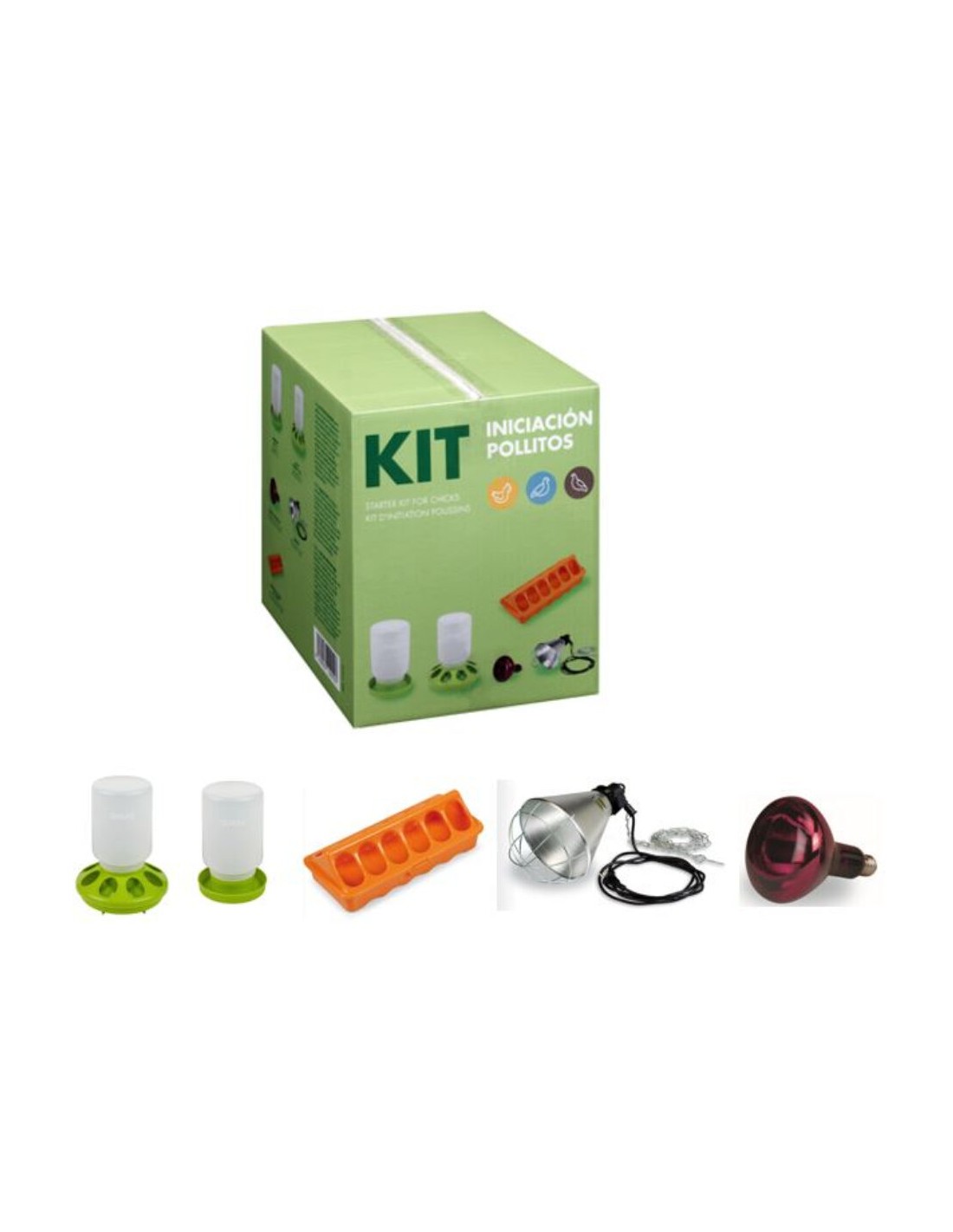 Comienza tu aventura en la cría de pollitos con este completo Kit de Inicio. Equipado con un pequeño comedero, bebedero, tolva de alimentación y una lámpara de calor infrarroja, este kit está diseñado para proporcionar a tus pollitos un ambiente óptimo. Fabricado con materiales duraderos, es fácil de limpiar y mantener, asegurando la salud y bienestar de tus aves
