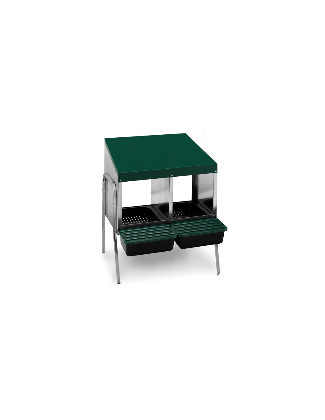 Fabricado con chapa galvanizada de alta calidad, este ponedero cuenta con dos departamentos independientes, cada uno equipado con su propia cubeta.