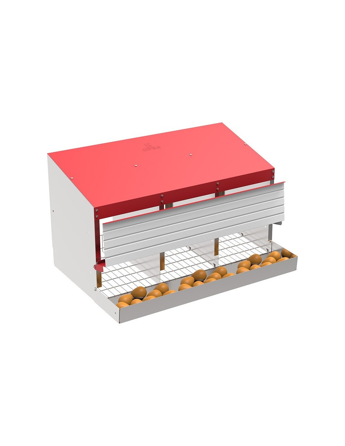 Cada uno de los 3 departamentos ofrece un espacio cómodo y seguro para que las gallinas pongan sus huevos.