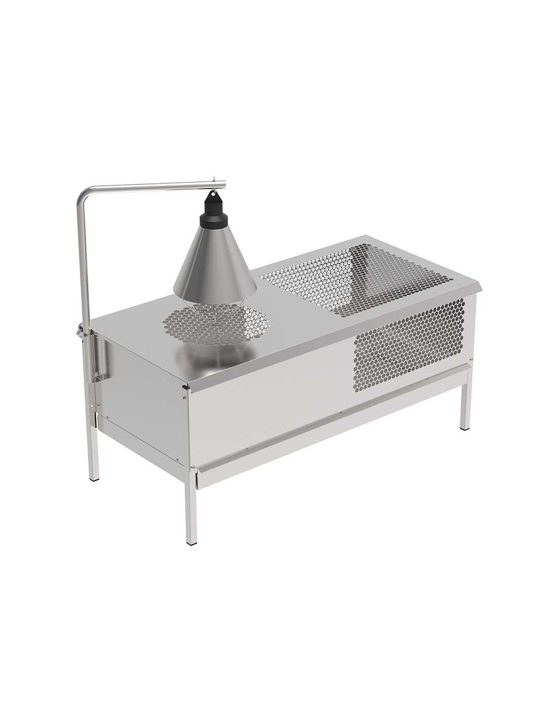 La superficie de 0,47 m² puede albergar hasta 50 pollitos, distribuidos en una zona cálida calefactable o a temperatura ambiente, según las necesidades de los animales.