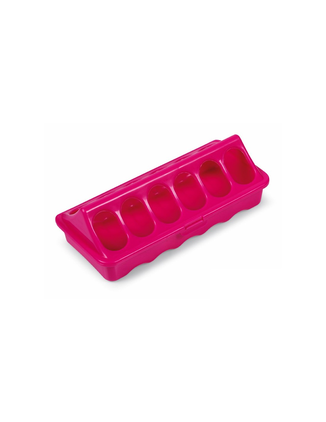 El color fucsia brillante no solo añade un toque de color al gallinero, sino que también facilita la localización del comedero.