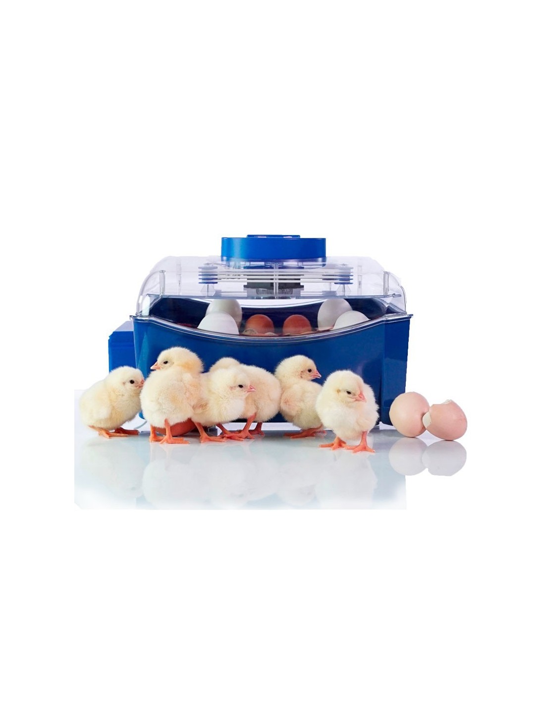 Con capacidad para hasta 16 huevos grandes o 64 huevos pequeños, esta incubadora es ideal para granjas avícolas y aficionados.
