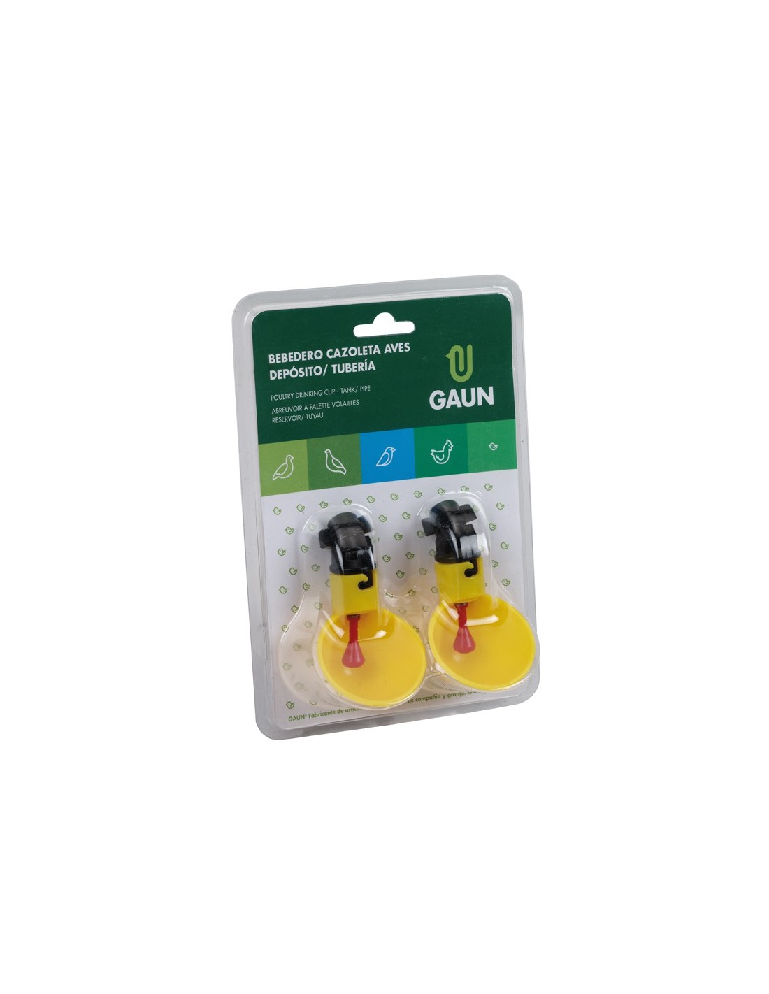 El Bebedero Cazoleta para Depósito o Tubería GAUN - 2 Unidades es una solución eficiente y duradera para el suministro de agua a tus aves.