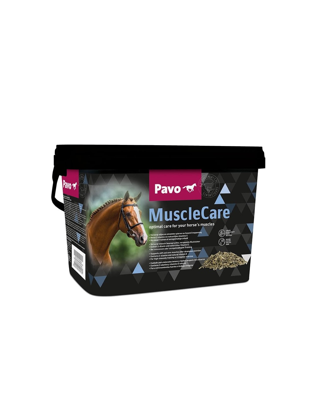 Si no sabe si su caballo es propenso a la acidificación de los músculos, después de un ejercicio extenuante puede administrarle Pavo Eplus como medida preventiva. Los caballos que se sabe que sufren de rigidez y dolor en los músculos después de la realización se beneficiarán de Pavo MuscleCare. Comience como mínimo dos semanas antes de la competición hasta una semana después, mezclando el producto con su pienso habitual. Se recomienda dar Pavo MuscleCare a los caballos muy sensibles a problemas musculares durante un período de tiempo más largo.