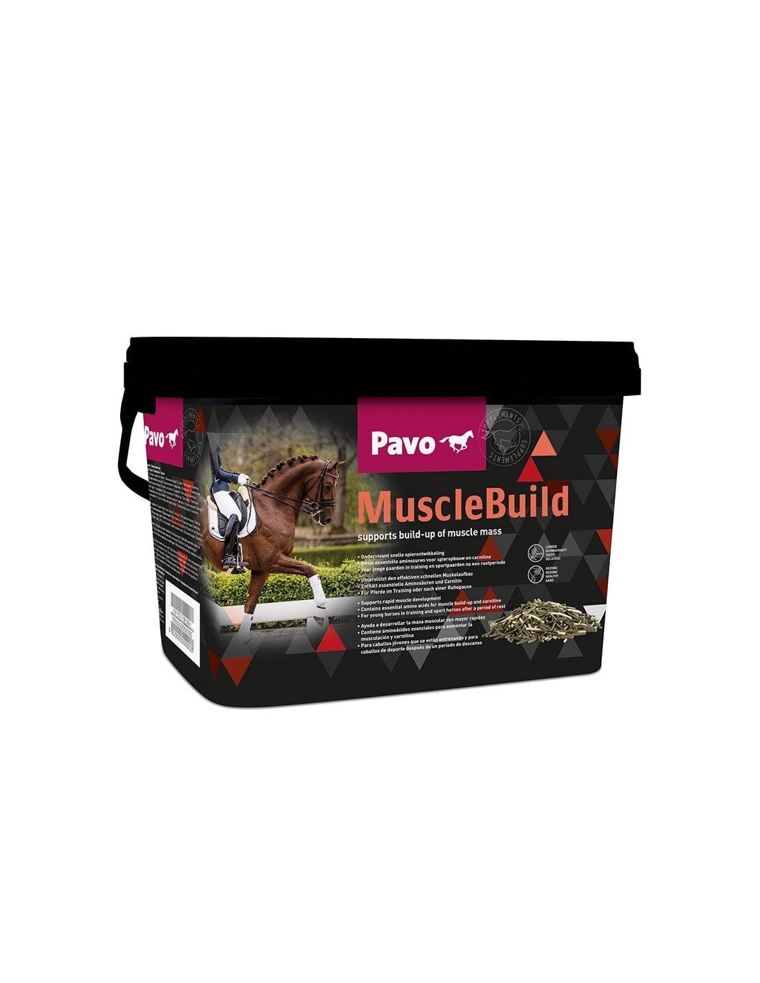 Pavo MuscleBuild contiene suero de leche en polvo, una sustancia muy conocida en la comunidad de culturistas. El suero en polvo aporta una cantidad de aminoácidos que son vitales para la formación de músculos. Los aminoácidos forman parte de las proteínas que funcionan como bloques de construcción para los músculos. La vitamina D3 ayuda a prevenir la fatiga muscular, mientras que se agrega L-carnitina para mejorar la conversión de energía en las células musculares. Además, Pavo MuscleBuild contiene los antioxidantes naturales CellProtect para neutralizar los radicales libres. Este producto no contiene trigo, por lo que es libre de gluten. Pavo MuscleBuild también está libre de dopaje.