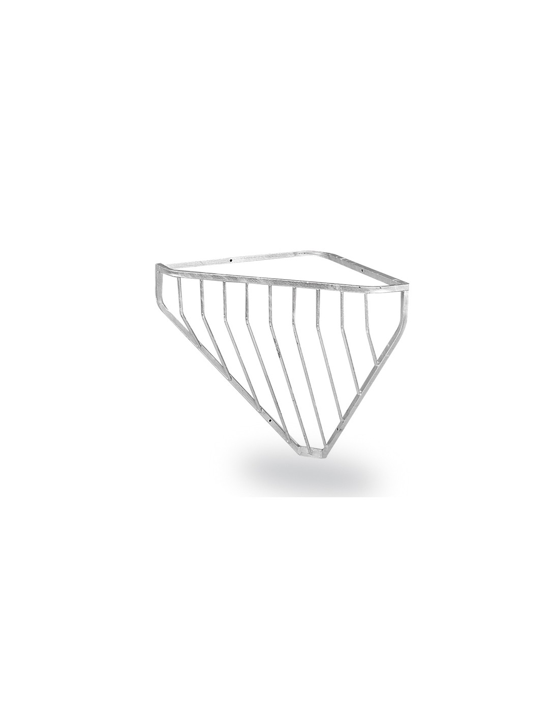 Su diseño en esquina permite aprovechar al máximo el espacio en el establo, mientras que su rejilla metálica evita el desperdicio de alimento.
