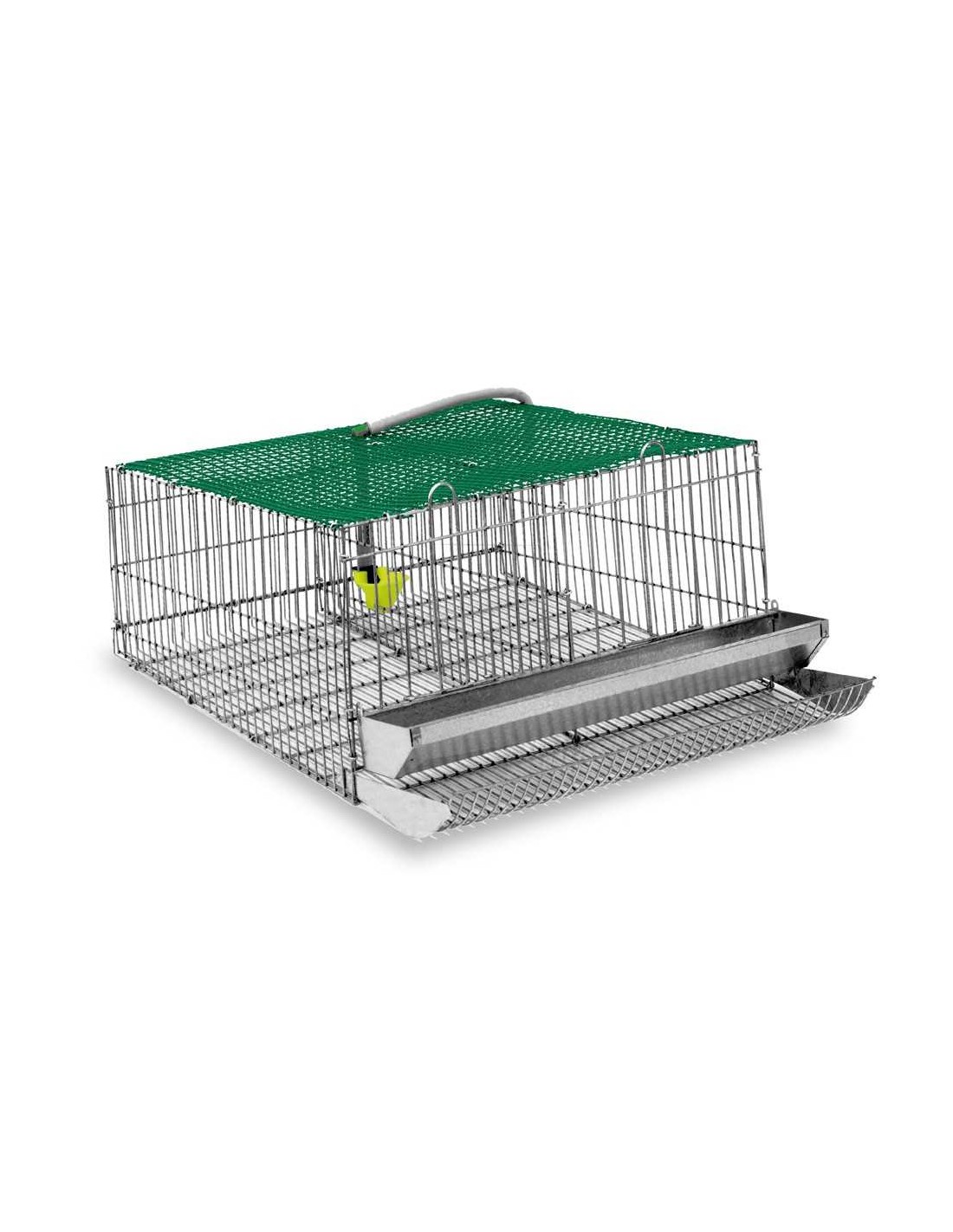 Fabricada con materiales resistentes, esta cesta cuenta con dos departamentos separados por una rejilla, permitiendo una organización eficiente y evitando el escape de las aves.