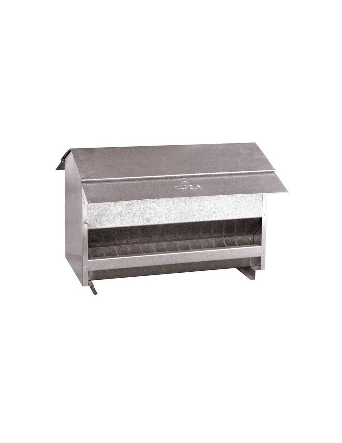 La tolva exterior para alimentación de perdices de Copele está fabricada en chapa galvanizada resistente a la oxidación, ideal para su uso en exteriores.