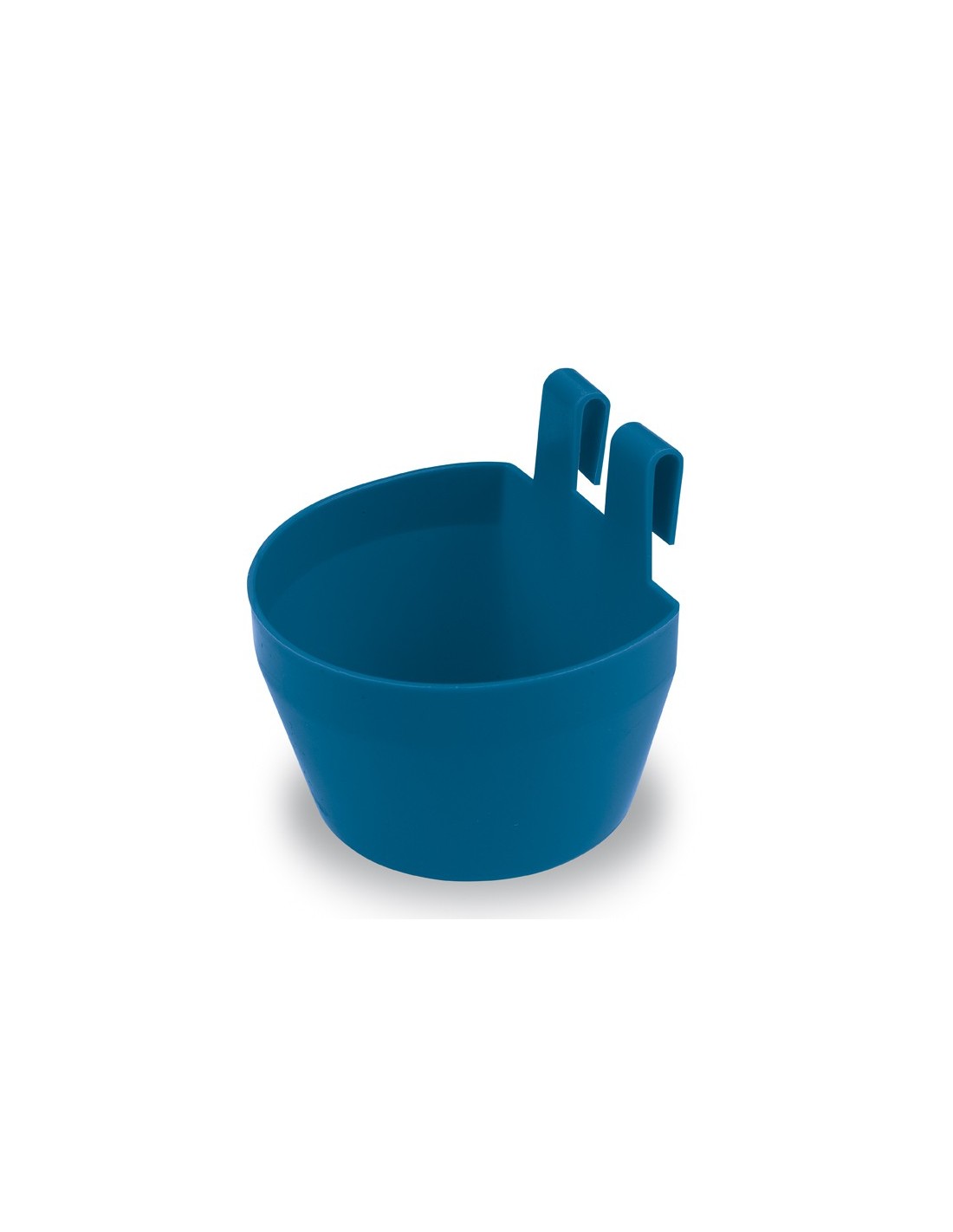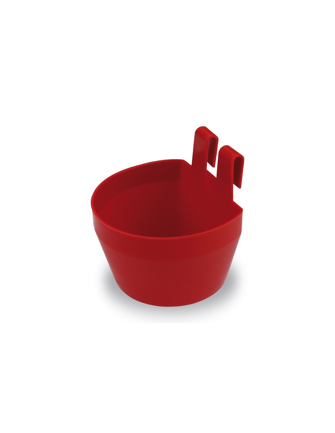 Fabricado con plástico de alta calidad, este comedero cuenta con ganchos que permiten fijarlo fácilmente en cualquier jaula o aviario.