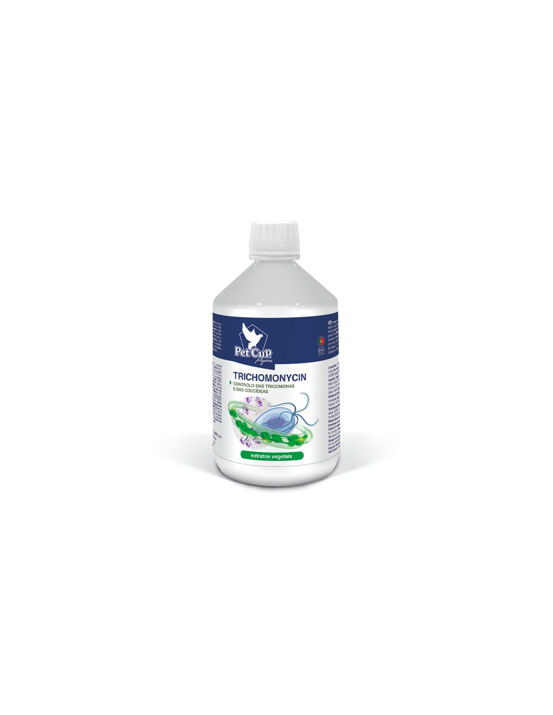 PET CUP Trichomonycin - 500 ml es un complemento alimenticio líquido diseñado para proteger la salud de tus aves.