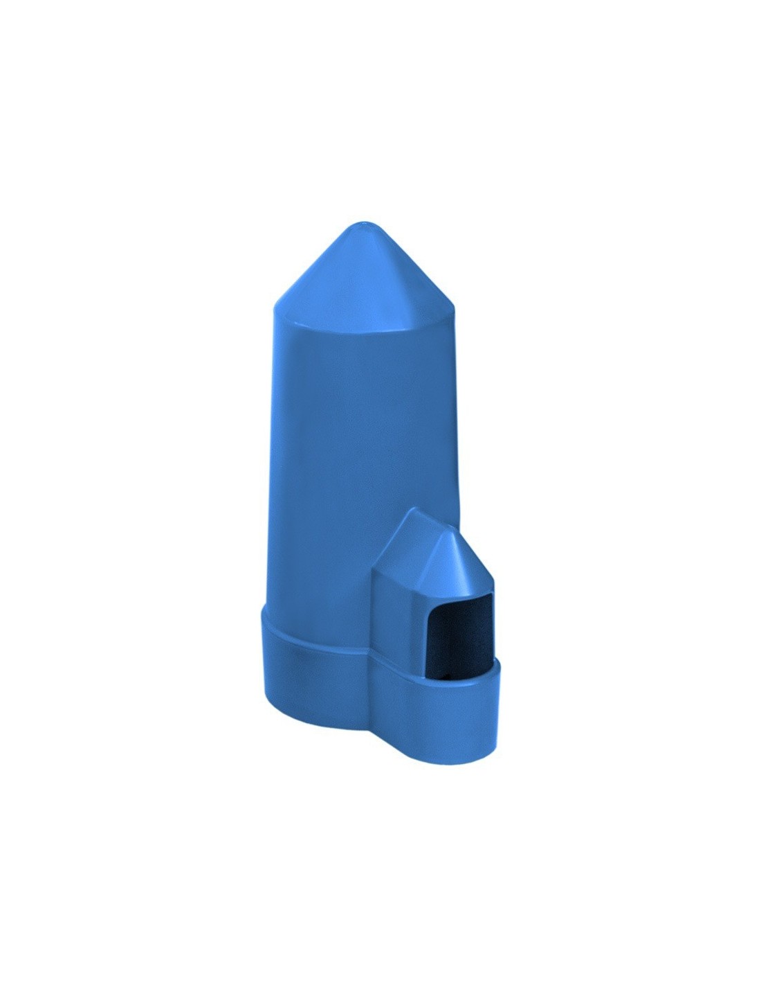 Fabricado con plástico resistente de color azul, este bebedero cuenta con un diseño de capilla que facilita el acceso al agua y evita derrames.