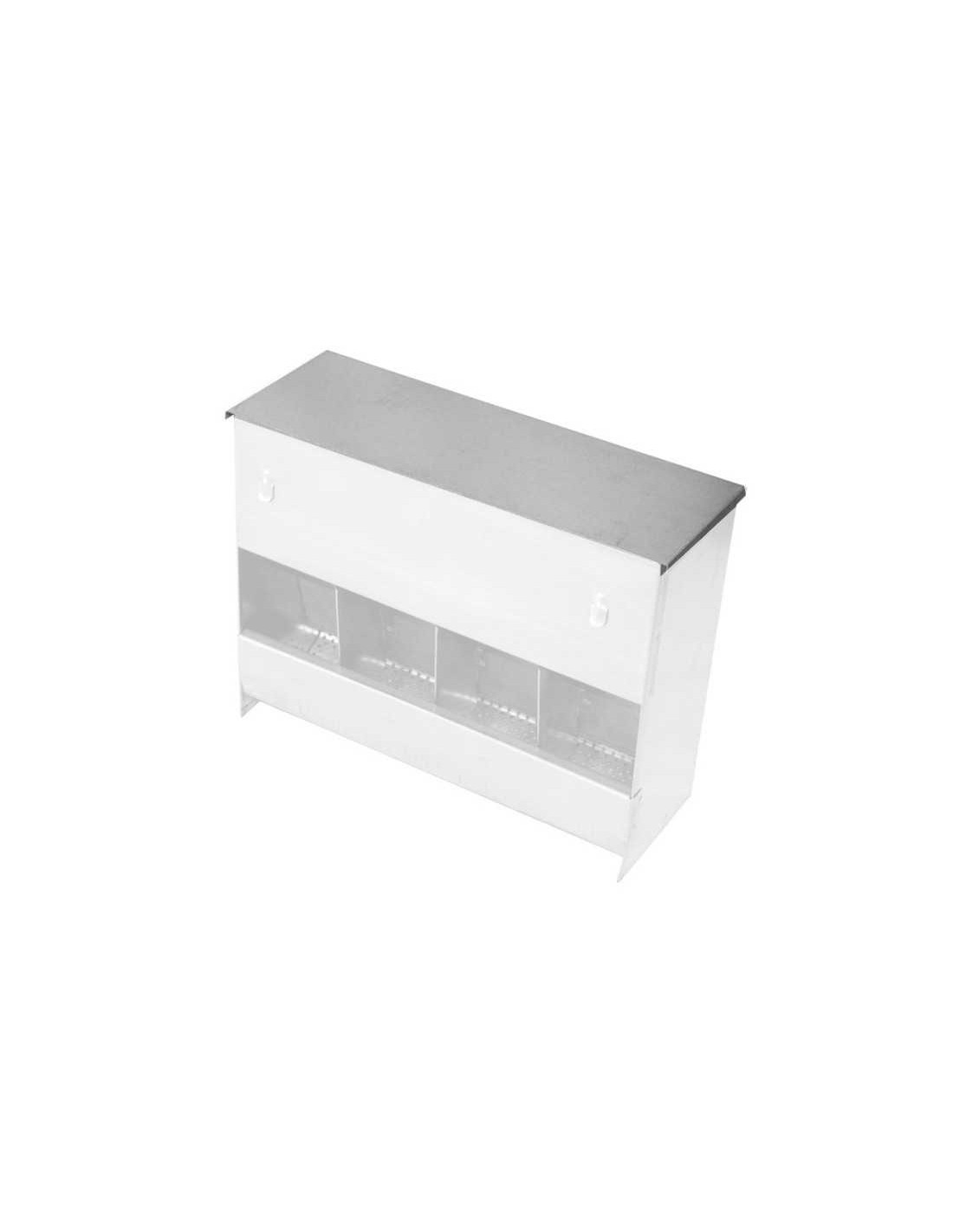 Fabricada con plástico resistente y galvanizado, esta tapa se adapta perfectamente a la parte superior de la tolva, evitando la entrada de agua, y el acceso de roedores y pájaros al pienso.